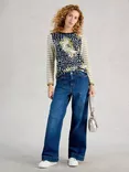 Clara Floral Stripe Sleeve Jersey Top, Green/Multi