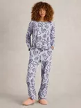 Fern Heart Tie Hem Pyjama Top, Grey/Multi