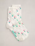 Textured Floral Ankle Socks, White