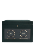 WOLF British Racing Vegan Leather 2 Module Watch Winder With Storage, Green