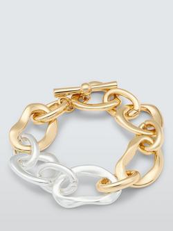 Irregular Link T-Bar Mixed Plate Bracelet, Gold/Silver