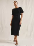 Albaray Mesh Yoke Velvet Midi Dress, Black