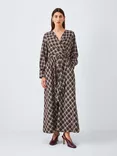Asymmetric Pattern Cap Sleeve Check Midi Dress, Multi