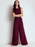Gwen Belted Slash Neck Jumpsuit, Dark Cherry
