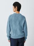 John Lewis Wool Blend Cable Knit V-Neck Cardigan, Brown, Brown