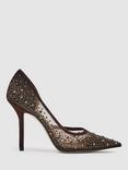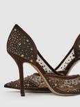 Reiss Sirena Stiletto Heel Leather Court Shoes, Black
