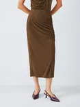 Ruched Jersey Midi Skirt, Chocolate