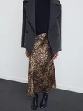 Piedra Leopard Print Satin Skirt, Brown