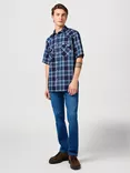 Western Short Sleeve Check Cotton Shirt, Flamingo Indigo