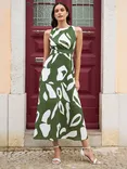 Abstract Tie Back Maxi Dress, Green