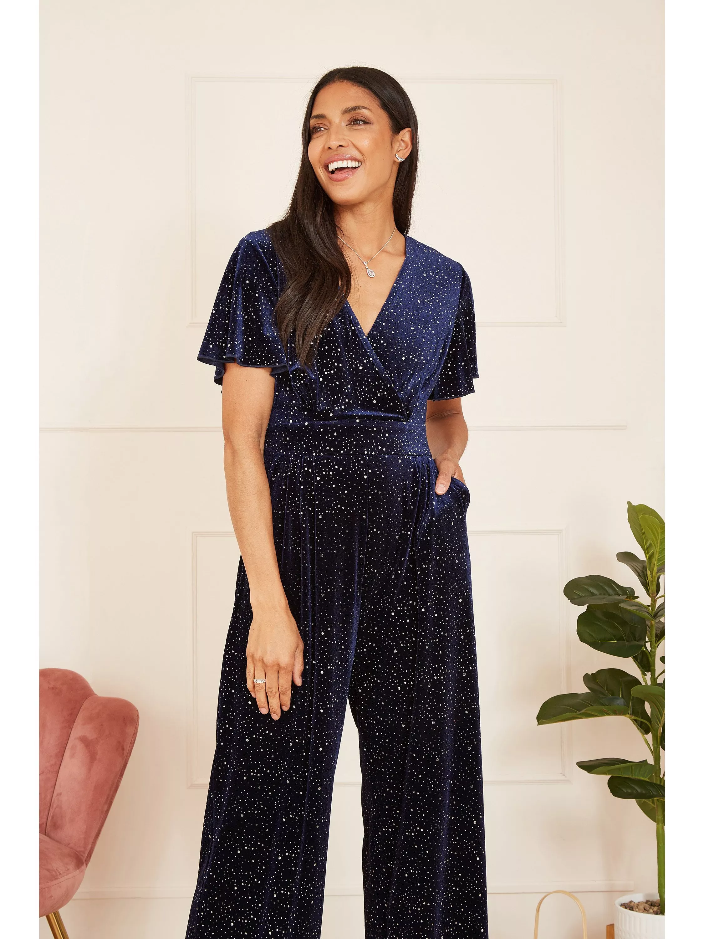 Yumi Sparkle Velvet Jumpsuit, Black