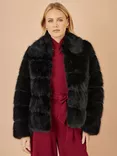 Yumi Crew Neck Cropped Faux Fur Coat, Black