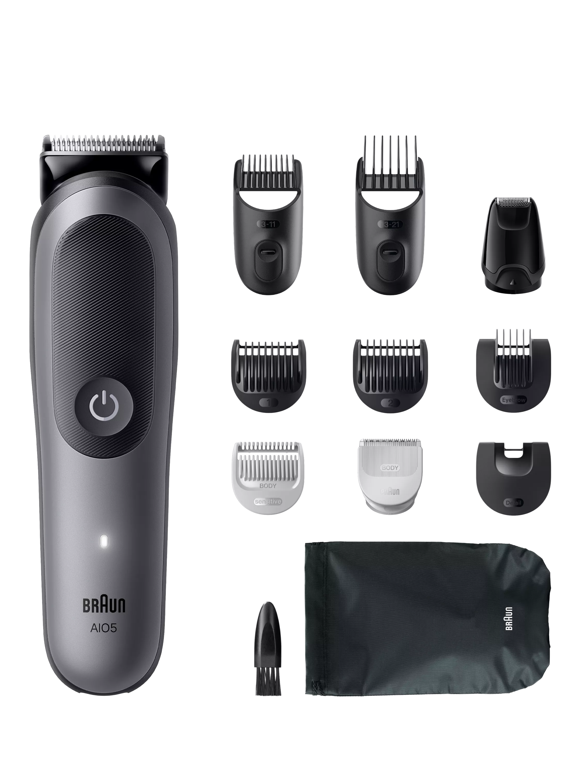 - Braun All-in-One Series 5 Grooming Kit, 11in1, Ultra Sharp Blade, 120 Min, SkinGuard For Body, Precise & Efficient Trim, AquaGrip For Under Water Use, AIO5560, Grey