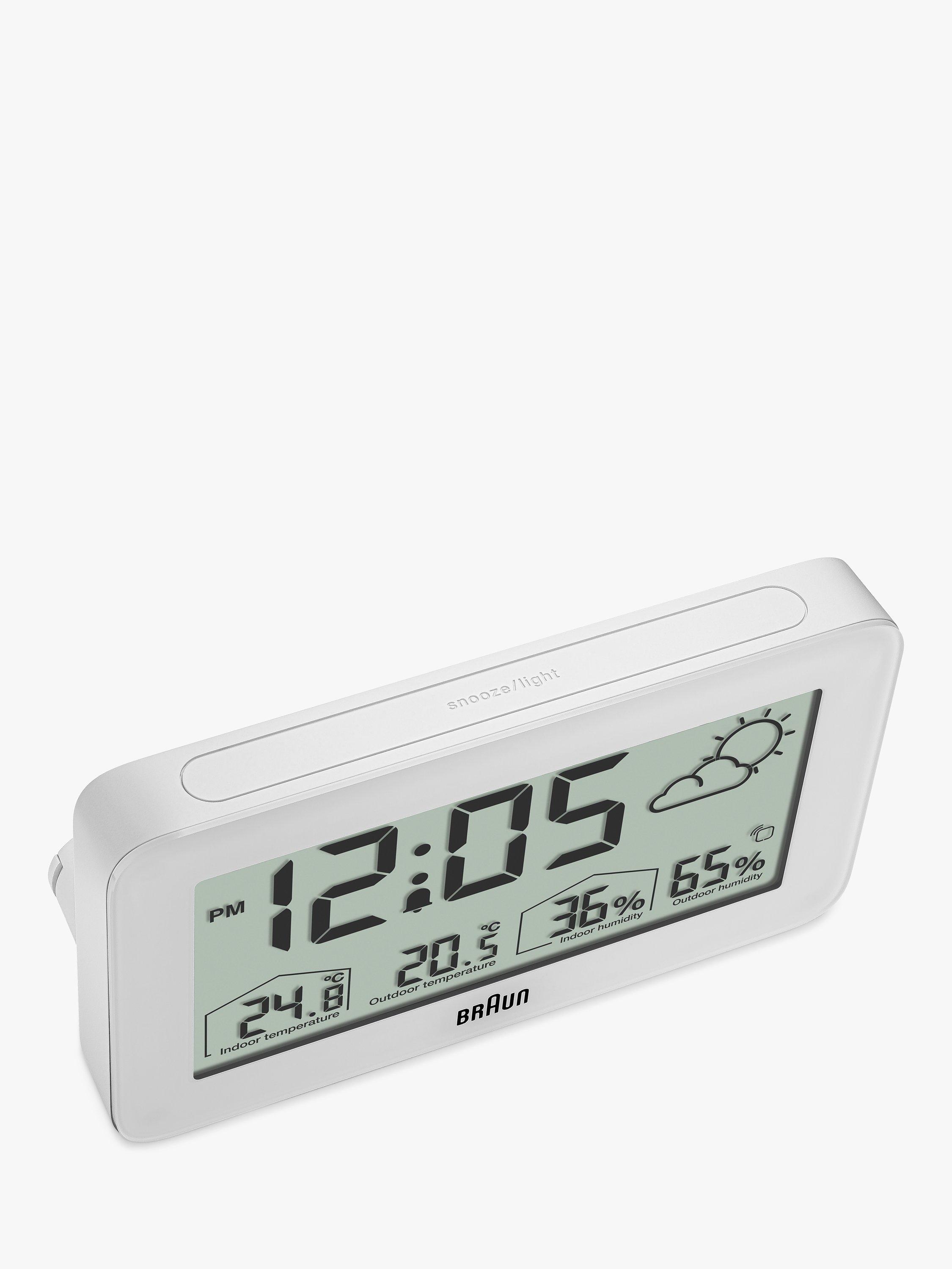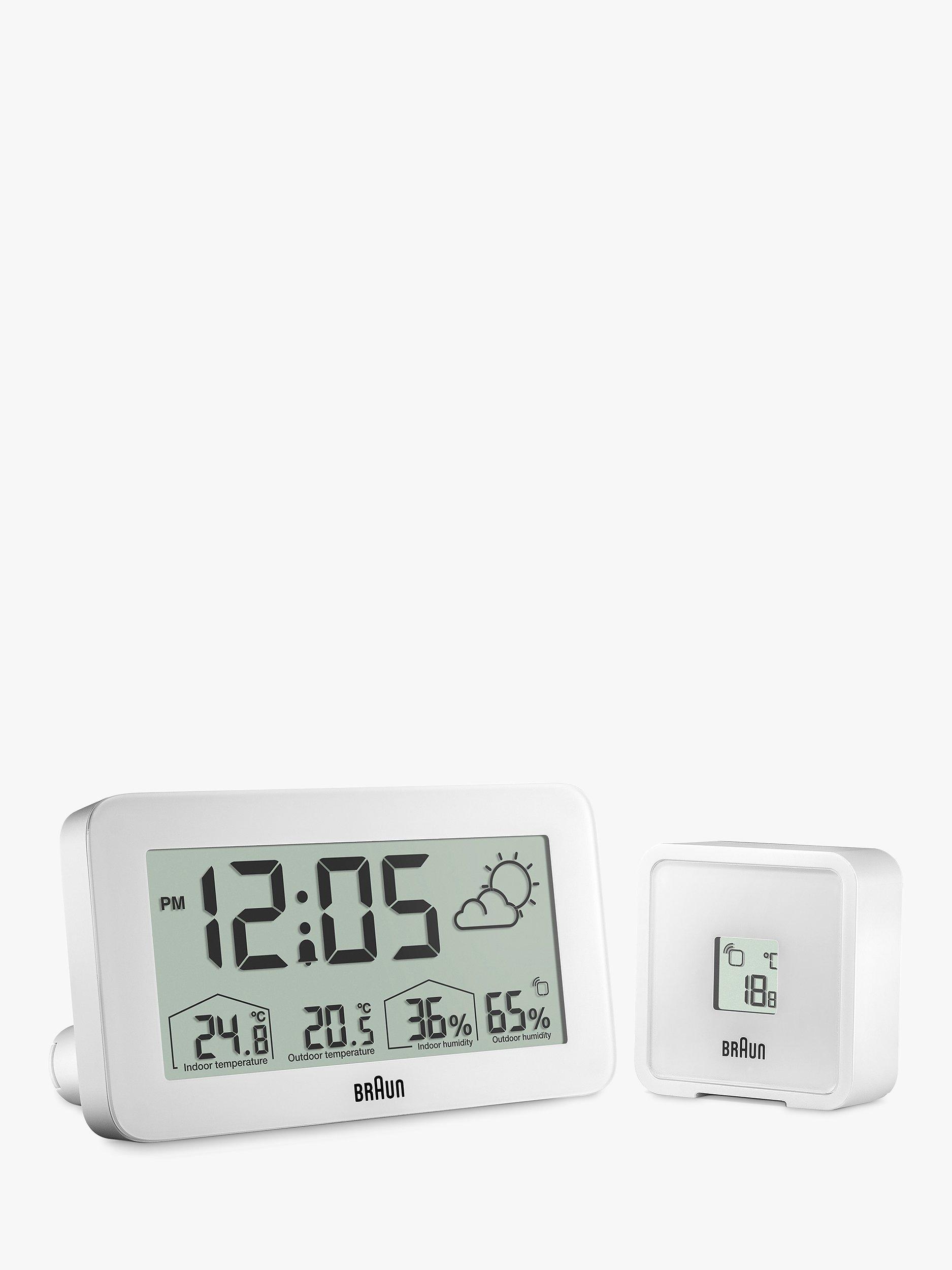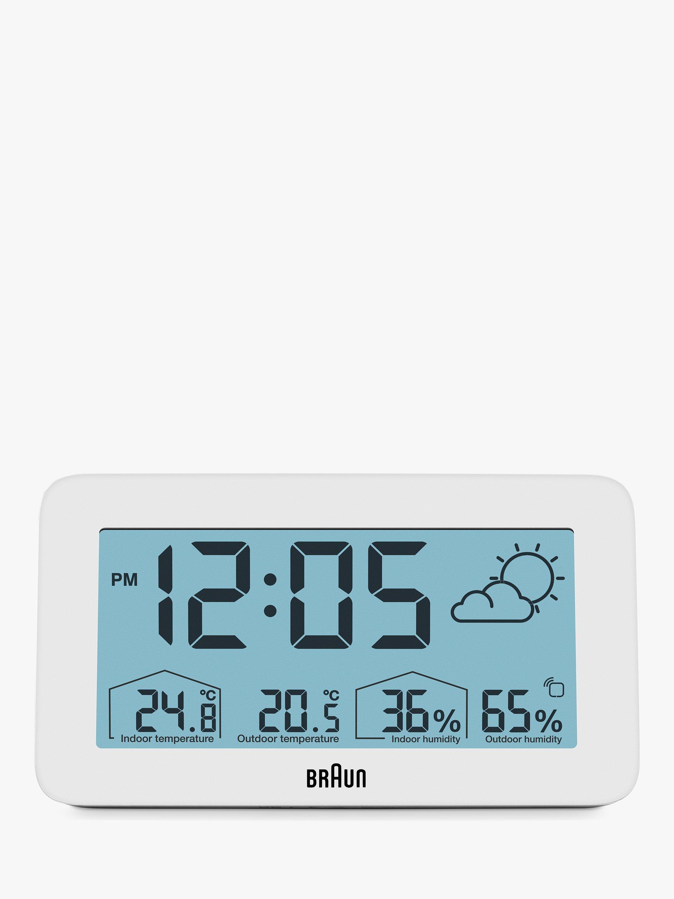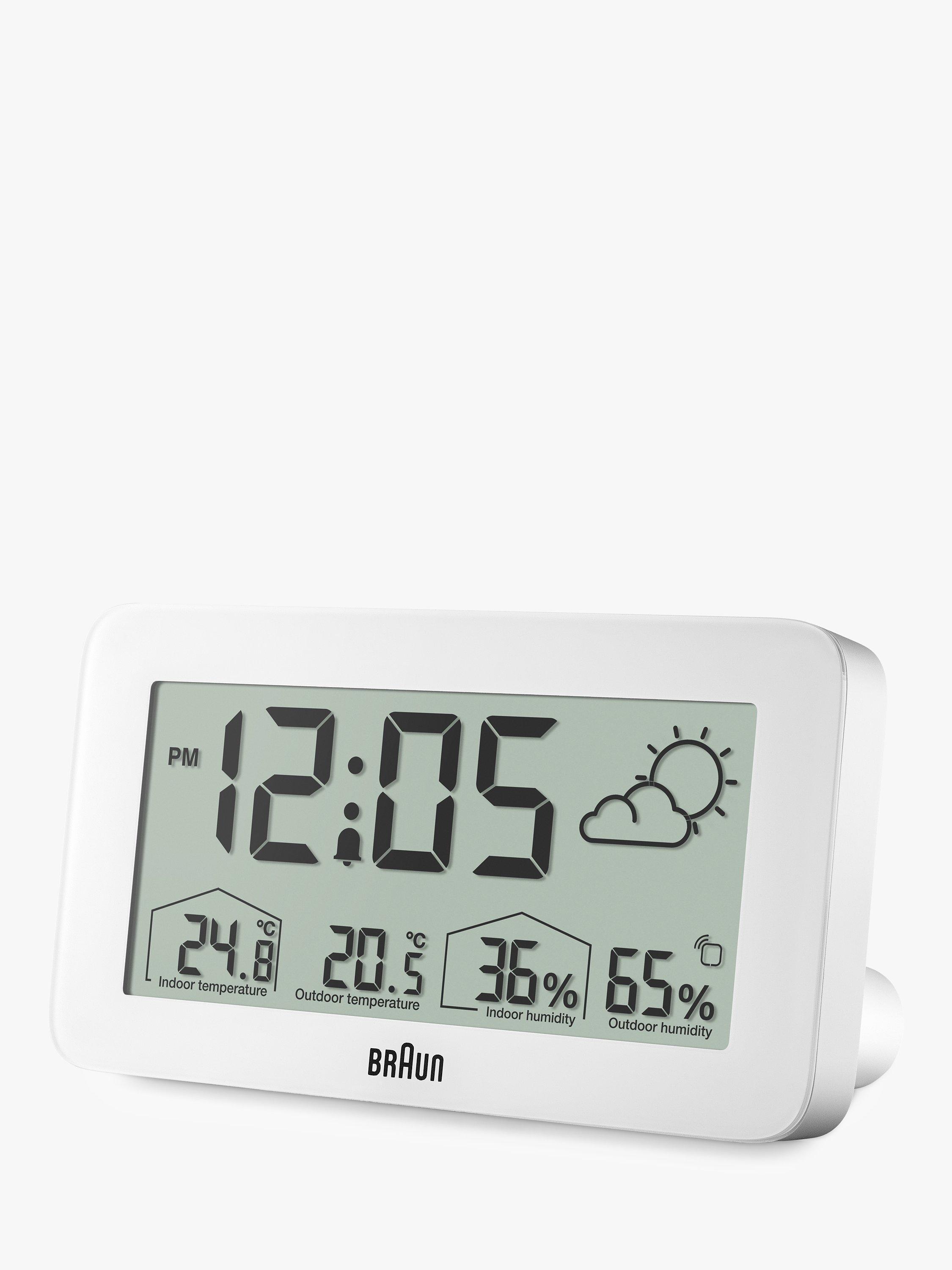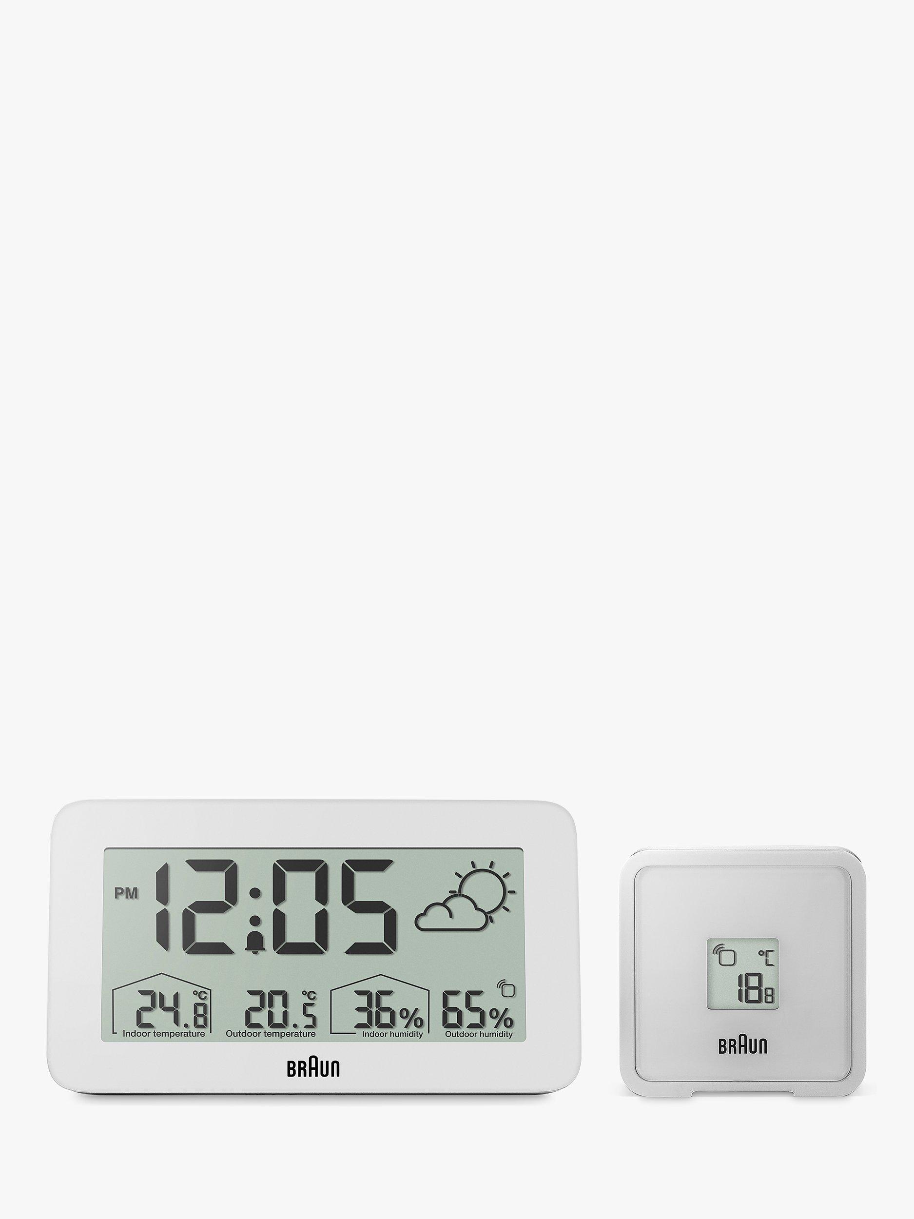 This Braun digital weather station features a positive LCD display with a continuous backlight function that illuminates the display when in a low-light environment to maximise legibility at night. The BC13 can be set to either 12 or 24-hour mode and displays the time. The BC13 has a customisable interface that can display indoor and outdoor temperature (°C or °F) and indoor and outdoor humidity. The outdoor sensor also features a temperature display.