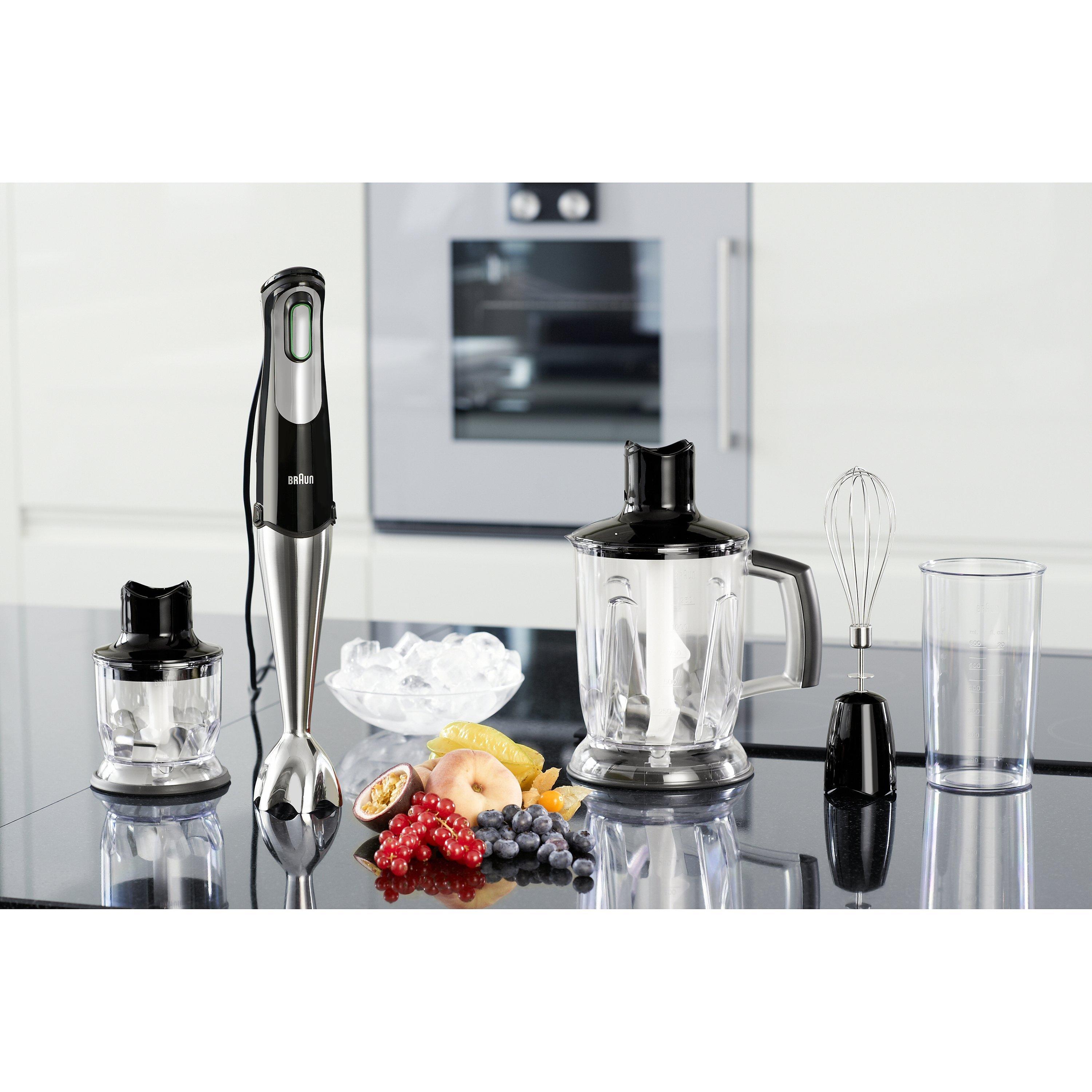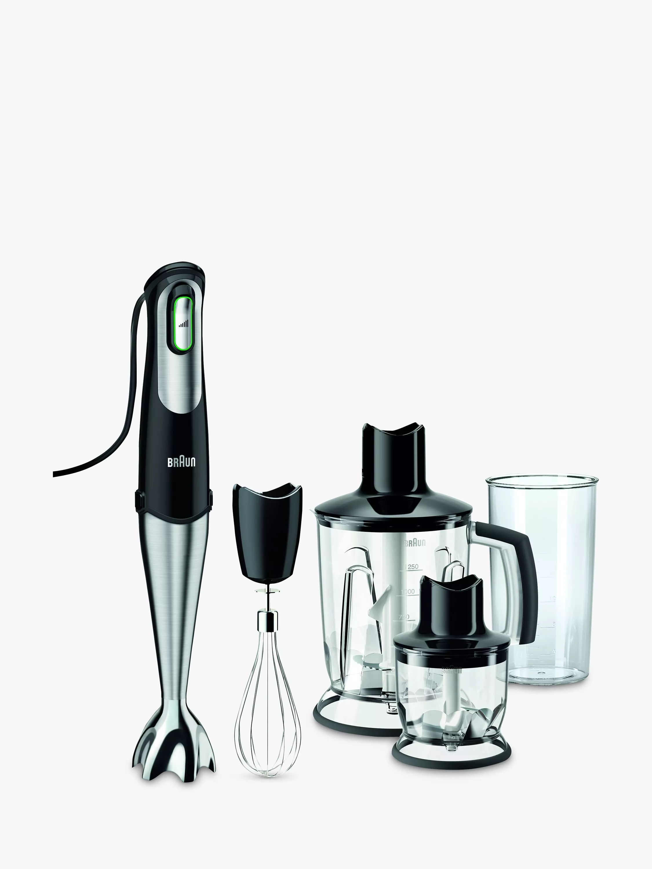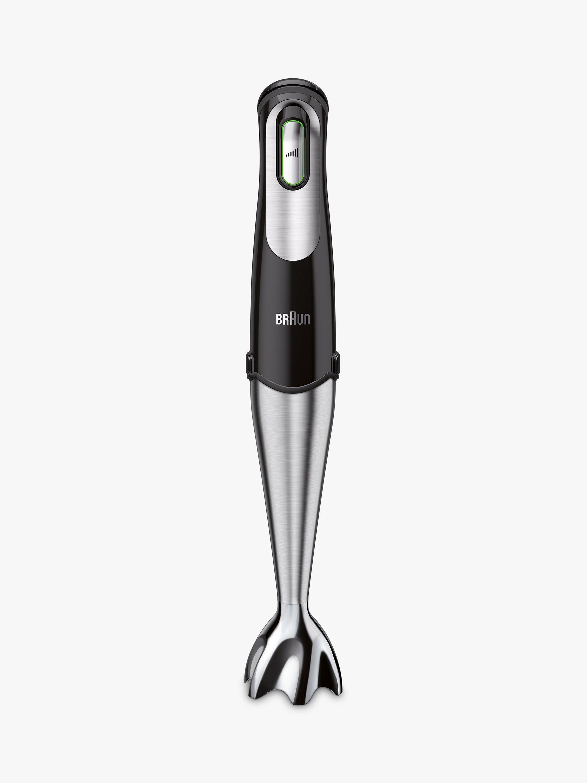 The MQ745 hand blender from Braun features Smart Speed control, a revolutionary technology -where the more you squeeze the more power you get. By gently pressing the speed regulator button, you can easily prepare all your recipes with one hand, changing the speed in real time, without interruptions. A soft grip handle, makes it very comfortable to hold and control.