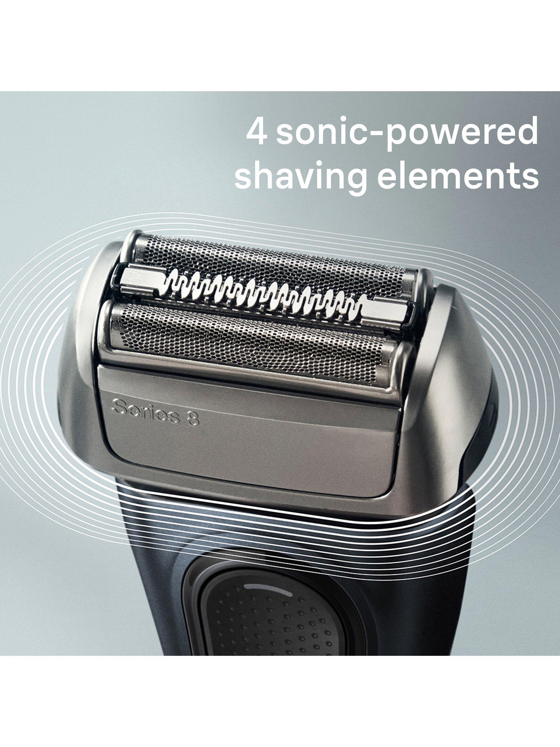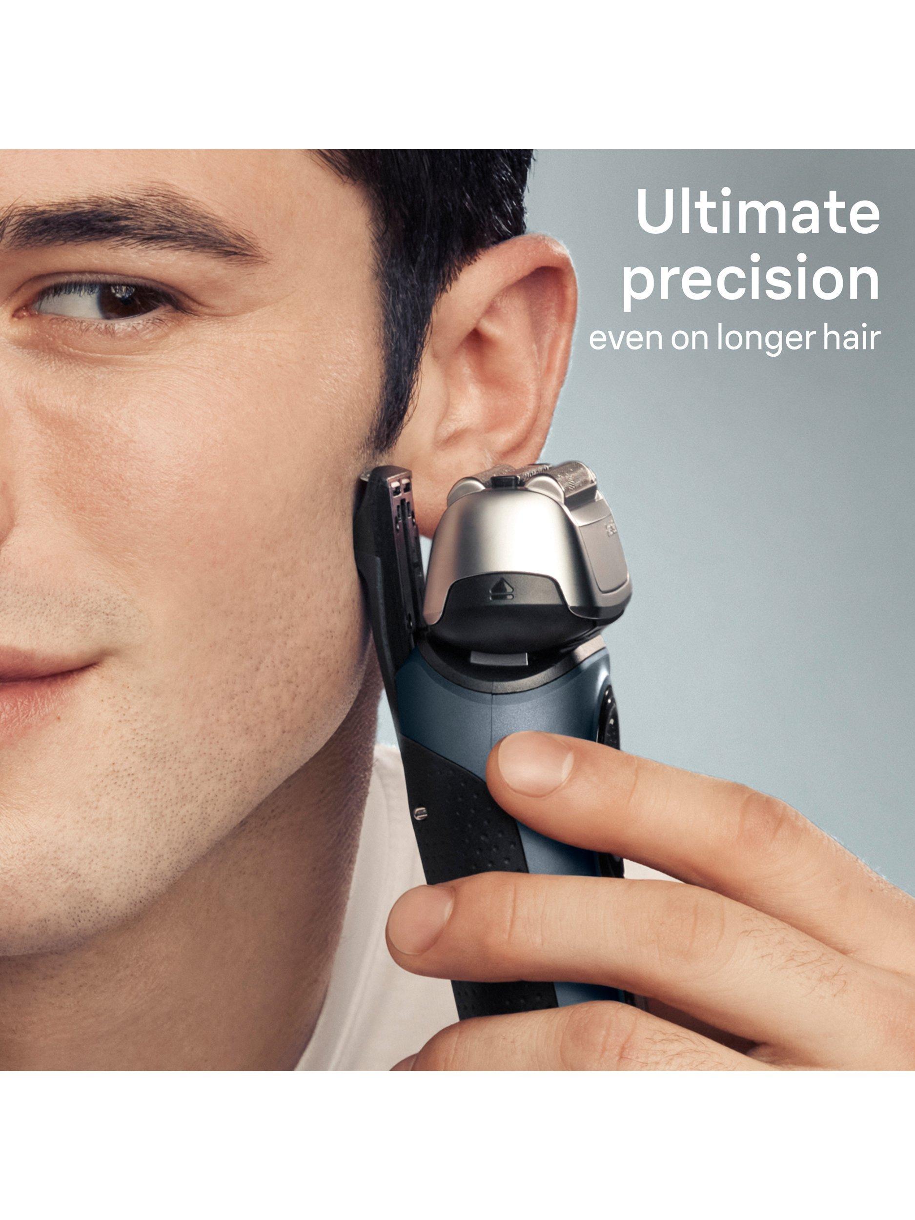 Redesigned to upgrade your shave with superior closeness (vs. Braun Series 3), skin comfort & precision. 4 sonic-powered shaving elements deliver a close and gentle shave even on dense beards. ProTrimmer for maximum cutting efficiency even on sideburns, moustache and under nose.