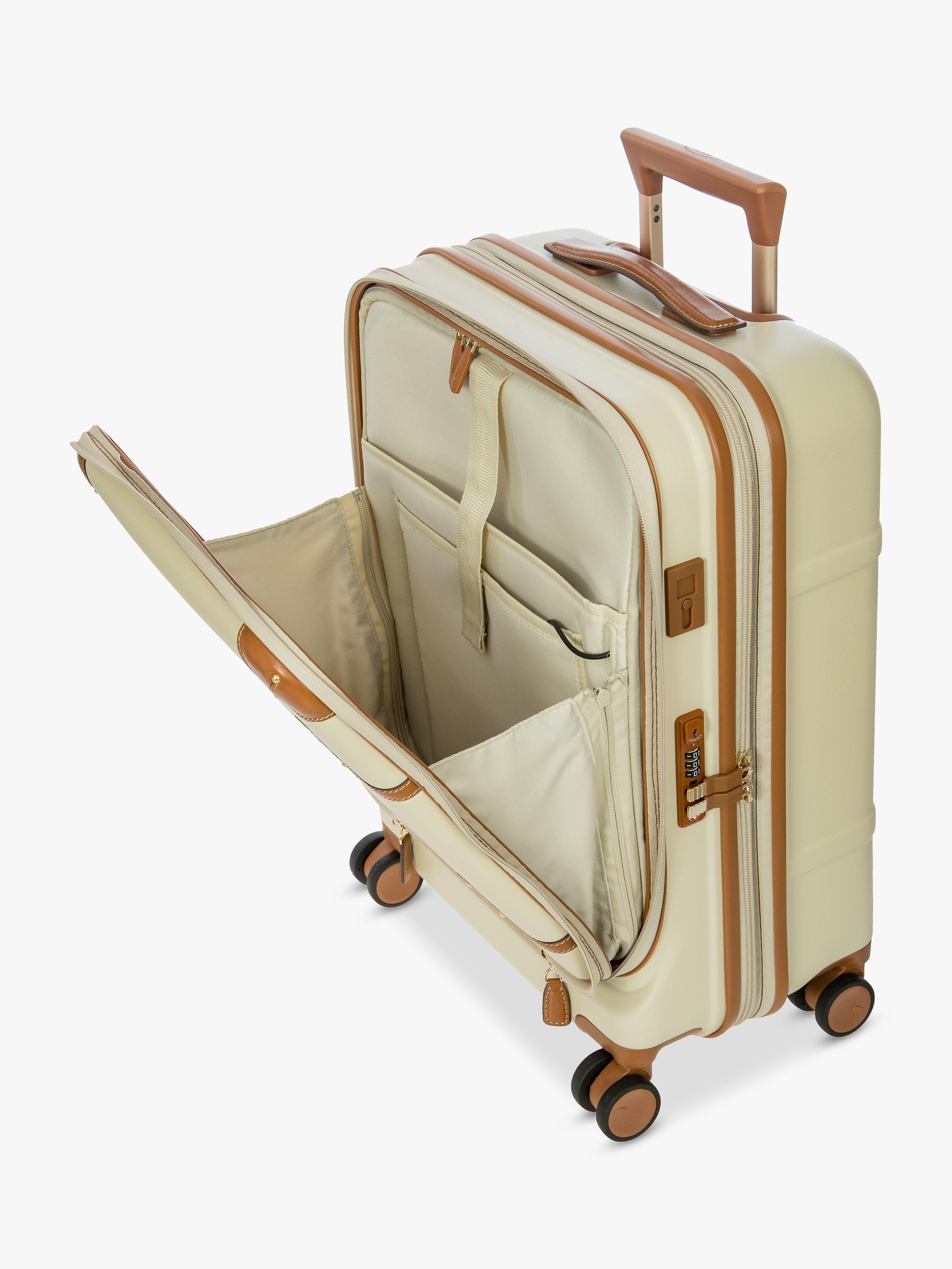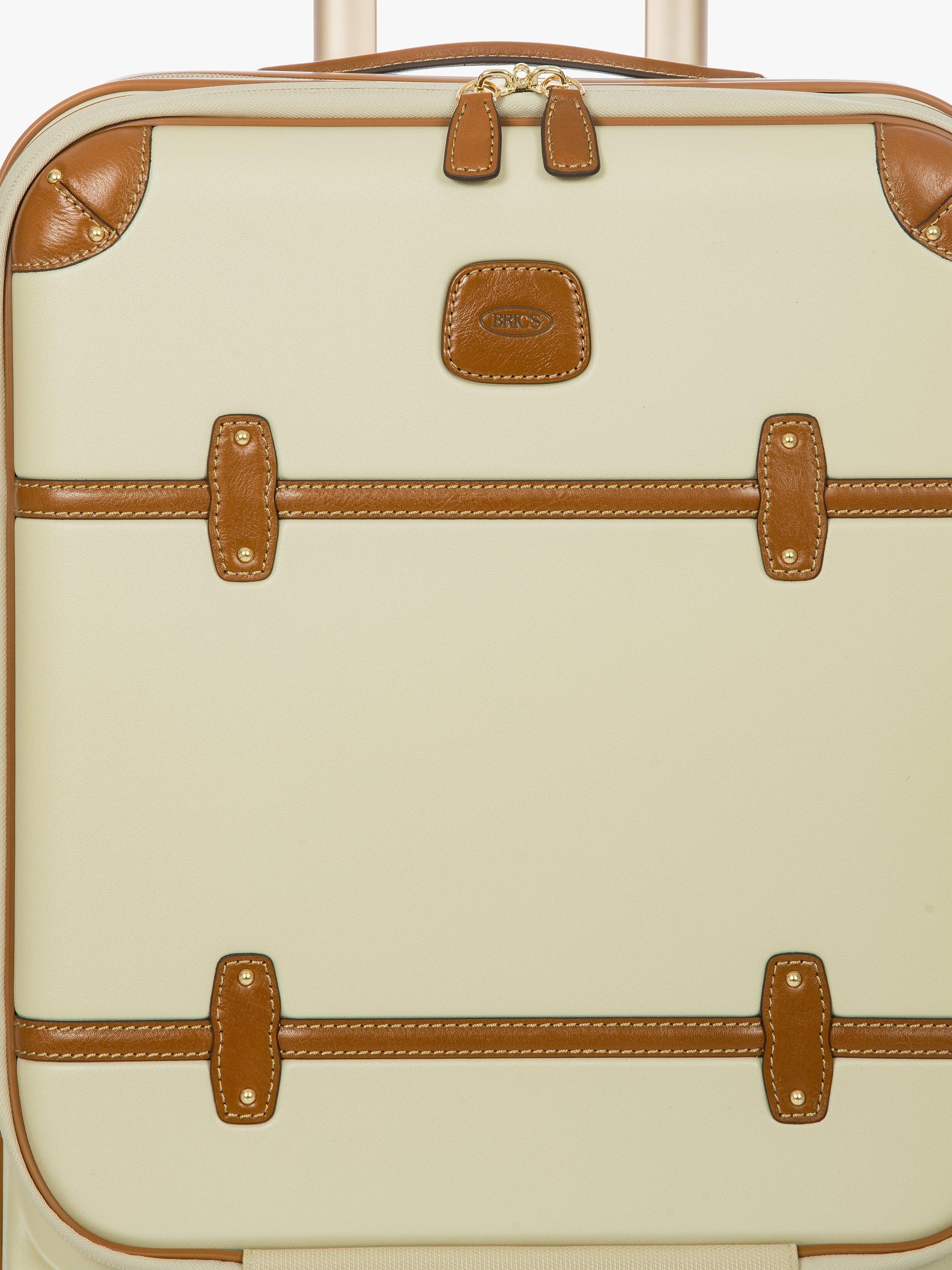 The suitcase's closure features a TSA lock and an ultra-secure zip: this anti-tampering system ensures an optimised degree of protection from attempted theft. Bric's distinctive real leather accents trim the outside of the Bellagio trolley, complemented by refined logo details.