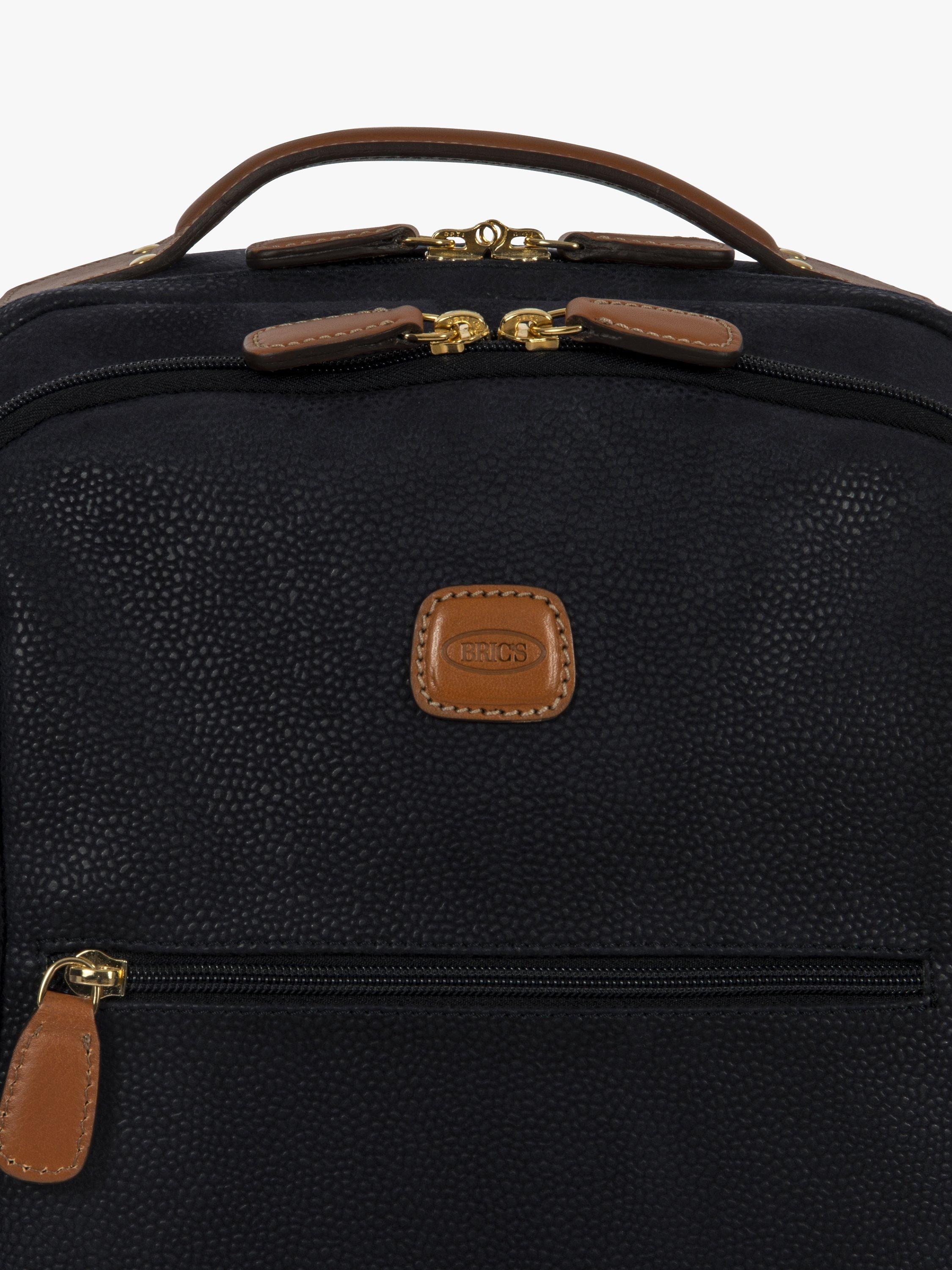 This backpack from Bric's LIFE collection is made in durable synthetic material that is a pleasure to touch, thanks to its suede effect surface. Spacious and elegant, with vegetable-tanned Tuscan leather finishes, it has been made to hold all the essentials needed for every trip.