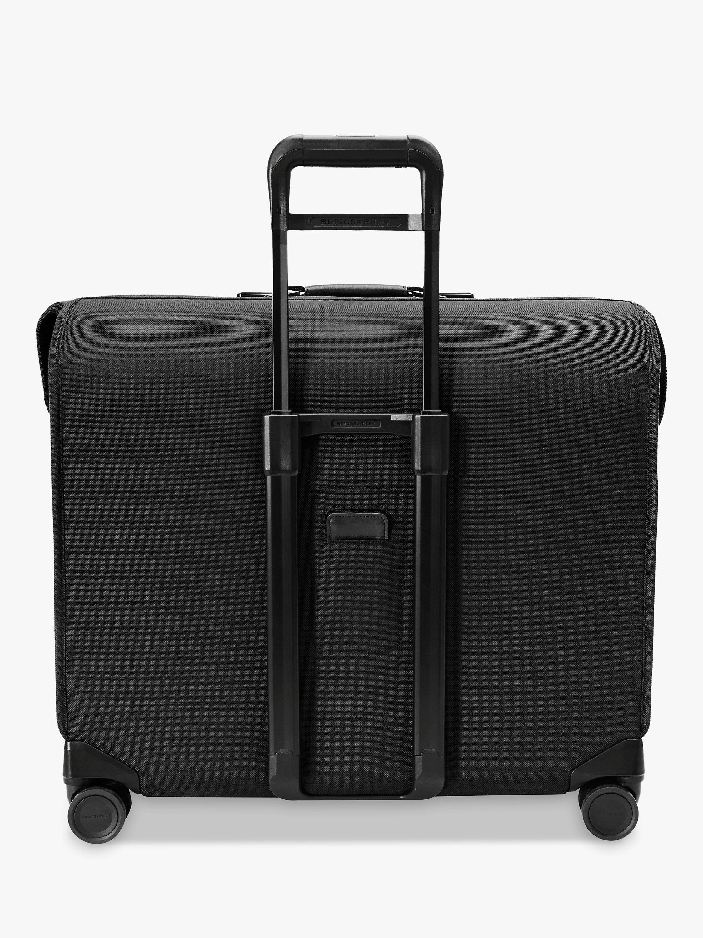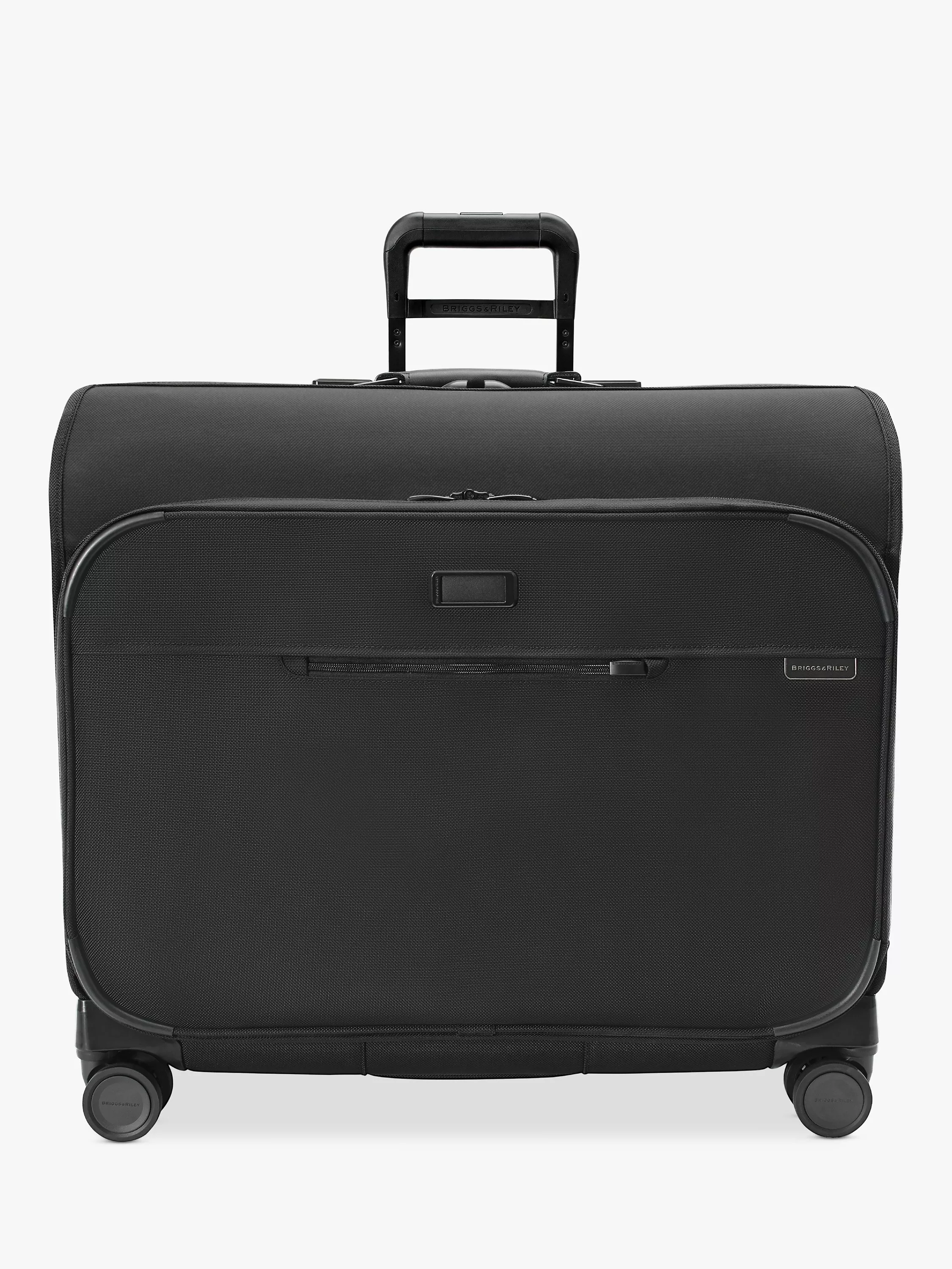 The Briggs & Riley Baseline wardrobe is crafted from nylon that is designed to repel water and resist inevitable scuffs and abrasions that occur while travelling. You can weave effortlessly with your wardrobe in tow, owing to the 4 spinner wheels that are fitted to the luggage piece.