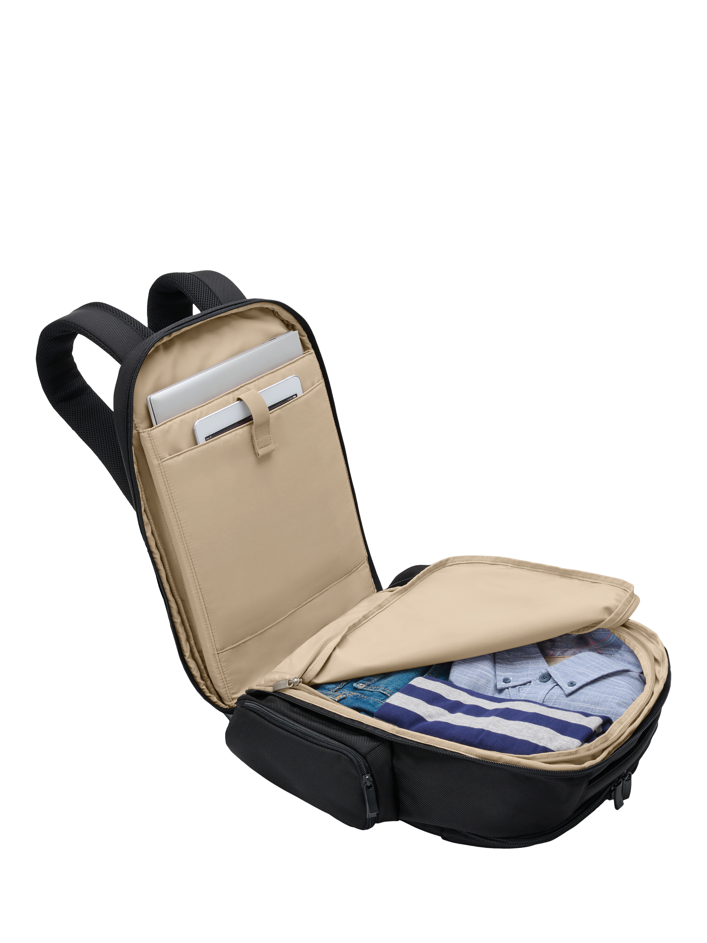 Modern travellers who need to stay organised will find a place for everything in the Baseline Travel Backpack. Padded laptop and tablet compartments make this ideal for bringing your devices on travel trips and around the world, and a clamshell opening means it's a breeze to access your electronics at security checkpoints. On longer trips, combine it with your favourite luggage for two-in-one transport using the slip-through back panel.