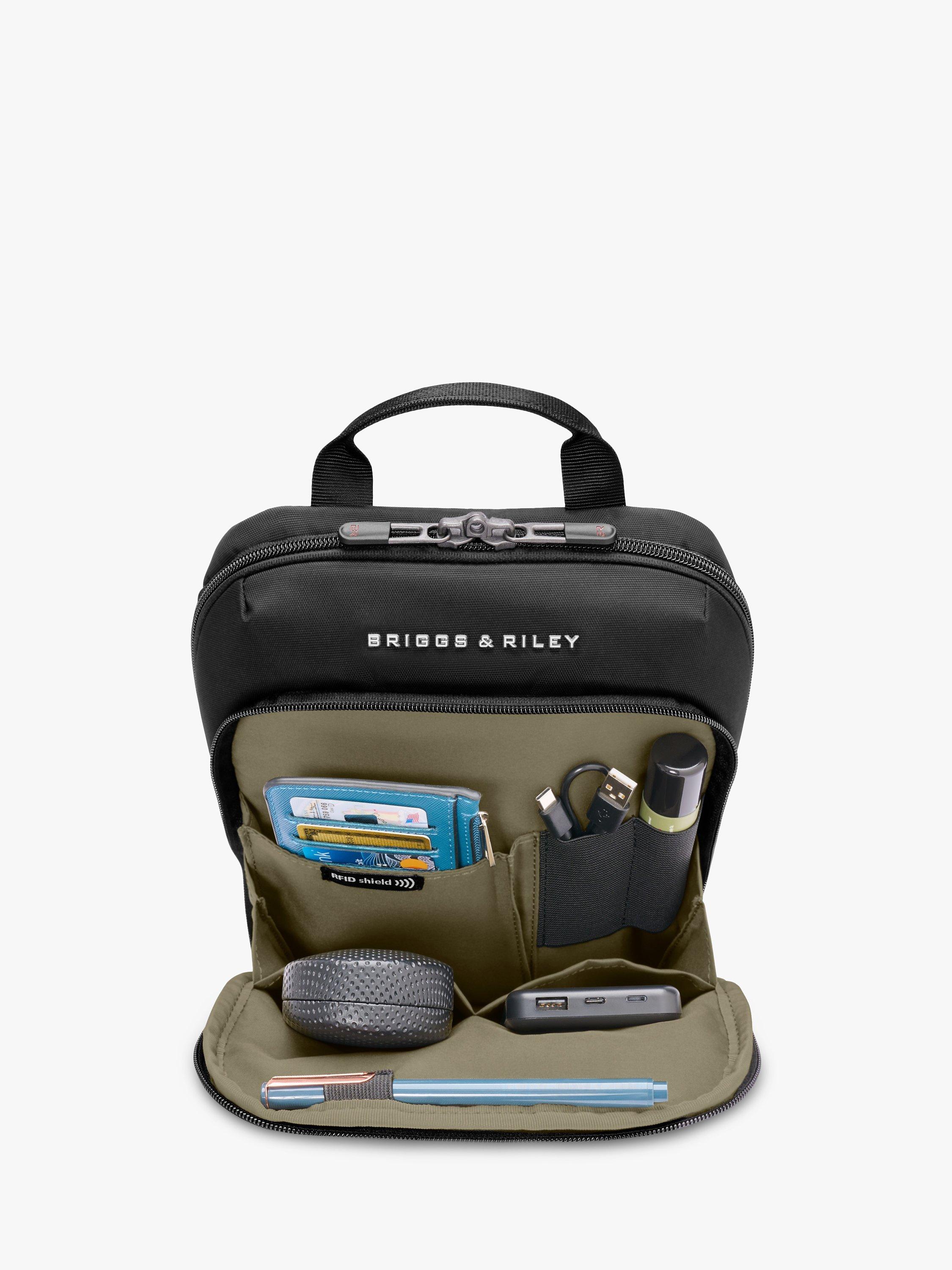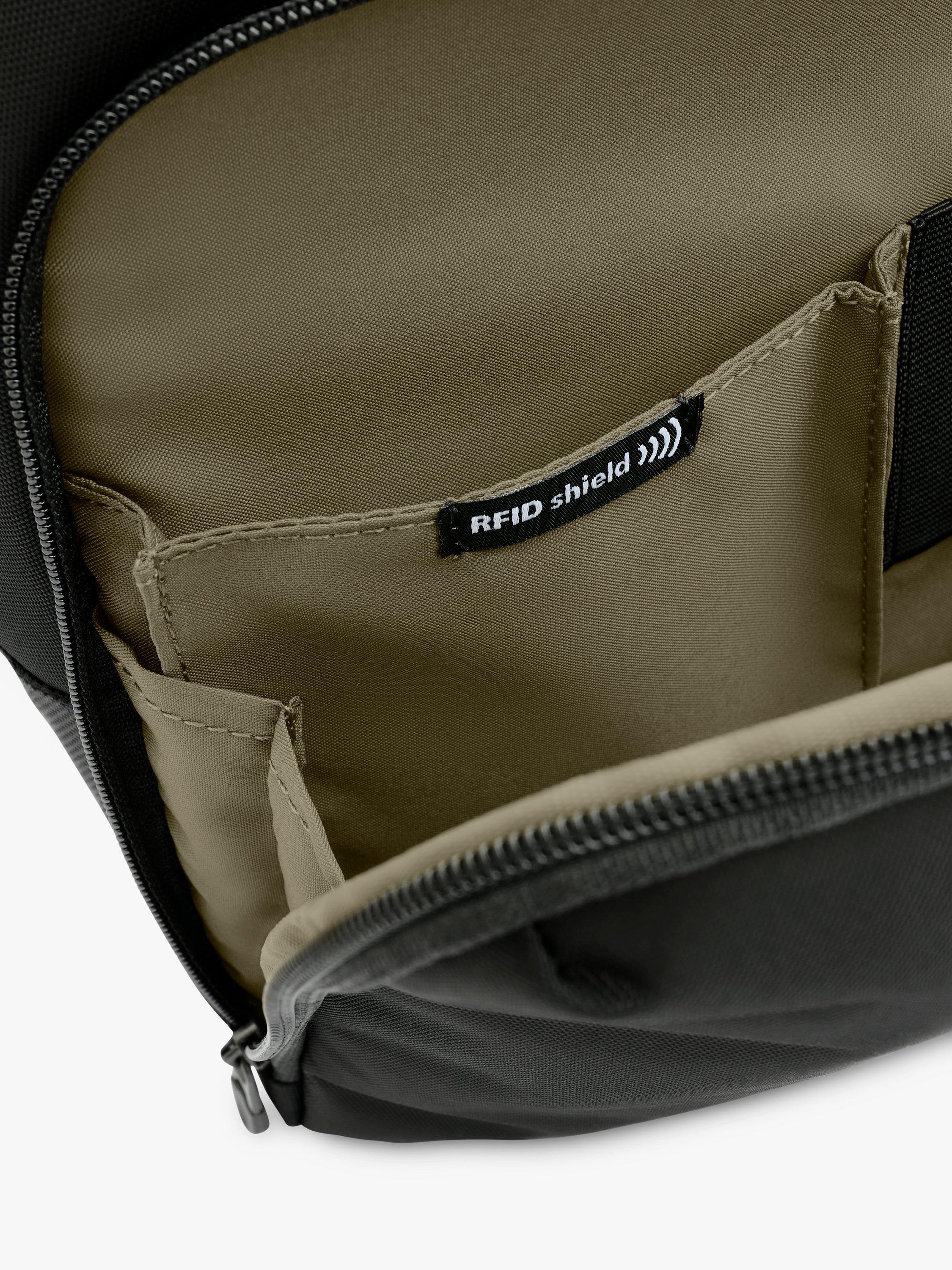 - Front compartment equipped with organisation and a RFID shielding to provide extraordinary protection from digital pickpockets. Tech compartment includes a slip pocket for a tablet.