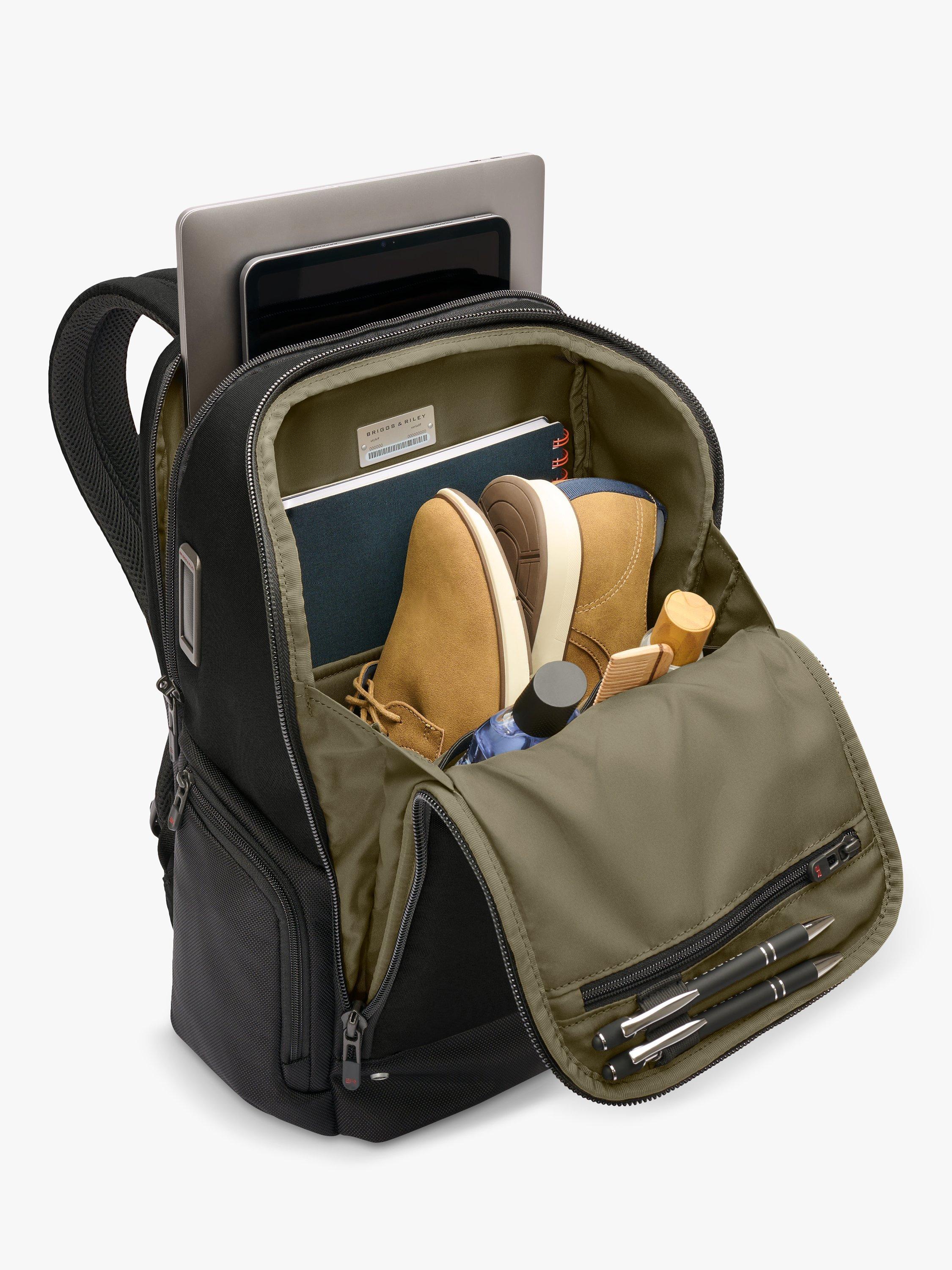 - Widemouth opening and generously sized gusseted main compartment can accommodate bulky or odd-shaped items. Full-length slip pocket in main compartment for storing letter or A4 folders and files. Tech compartment includes an integrated padded laptop sleeve protects most 15.6" computers and slip pocket for a tablet. Tech compartment features dual zipper pulls that can be used with a cable lock to keep contents secure.