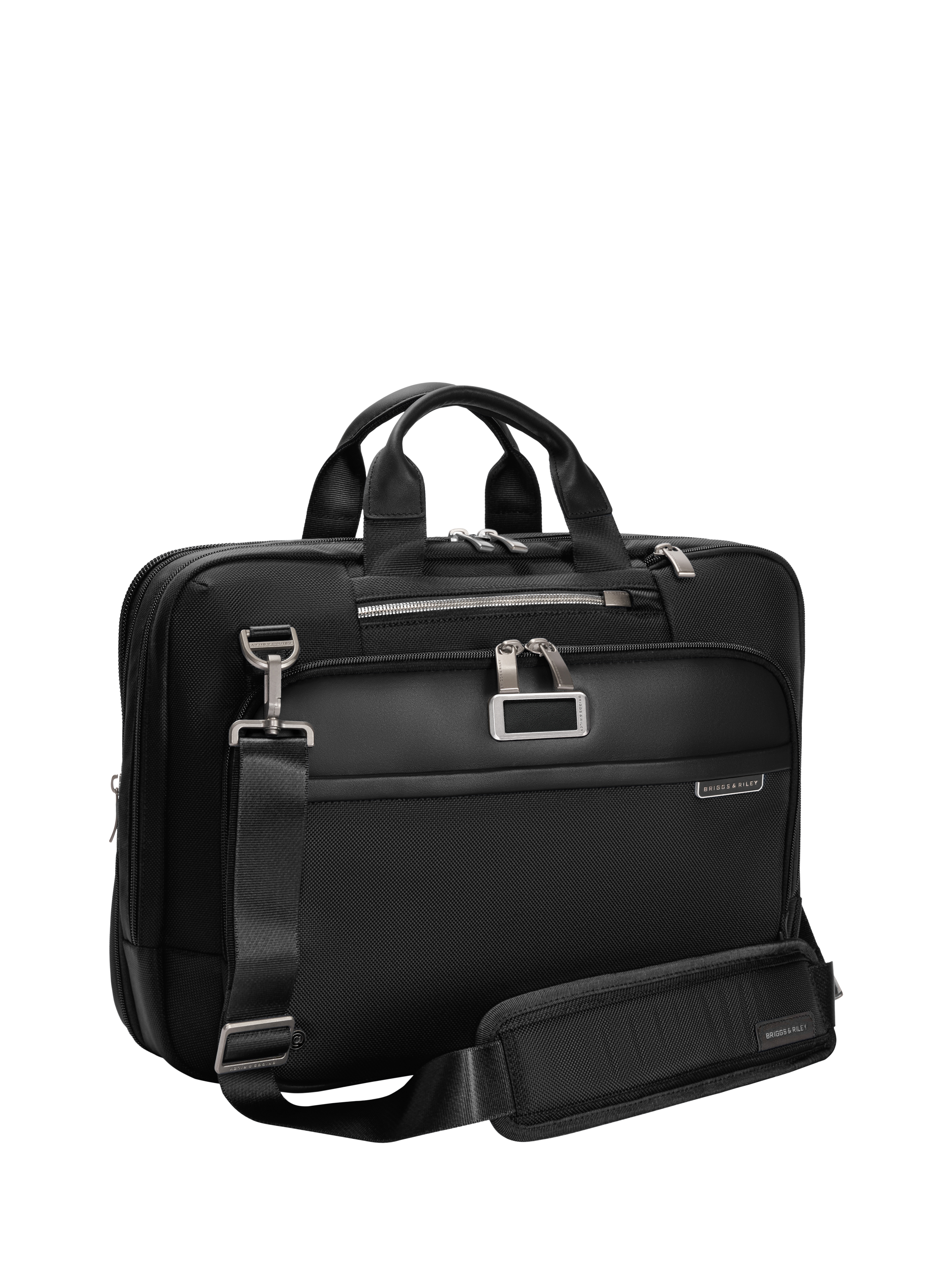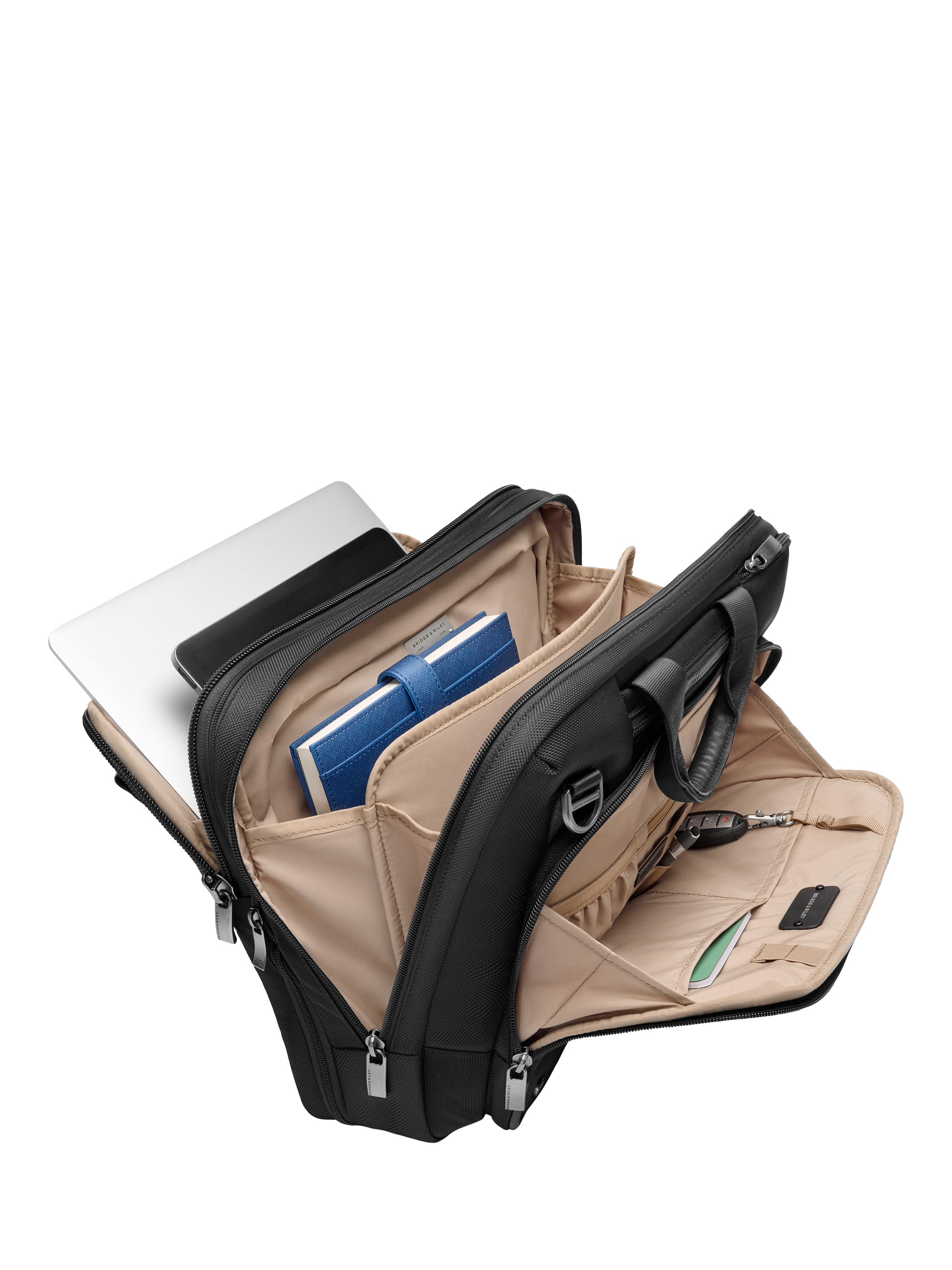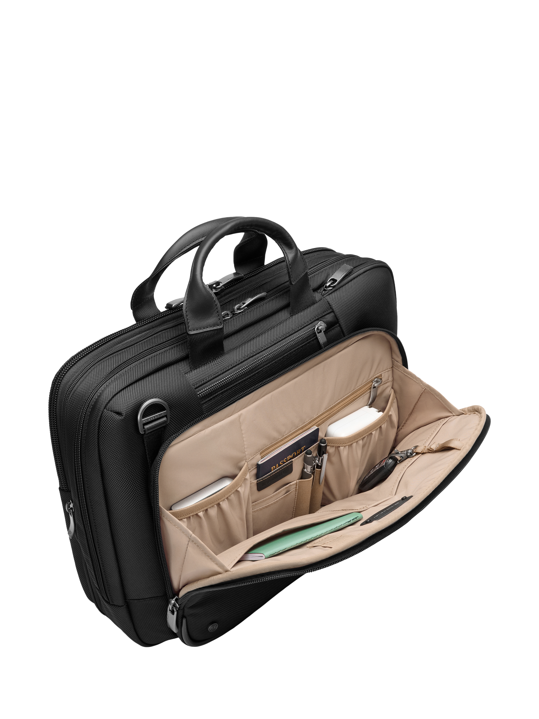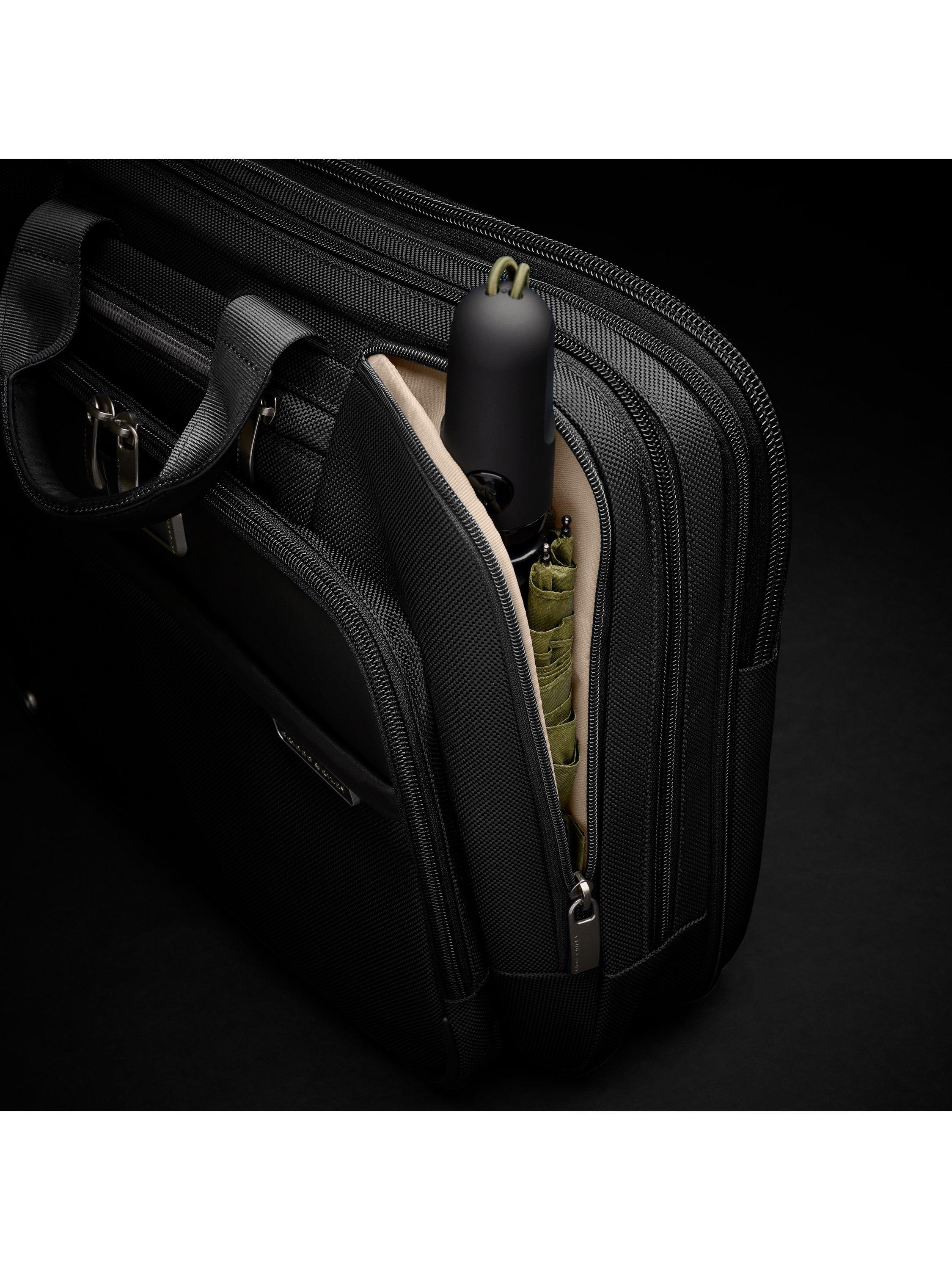 The ideal choice for keeping it compact and then expanding on demand. Equipped with thoughtfully designed tech compartments and pockets, this briefcase expands to create an additional 2.5" of storage space. Fits up to 15" laptops.