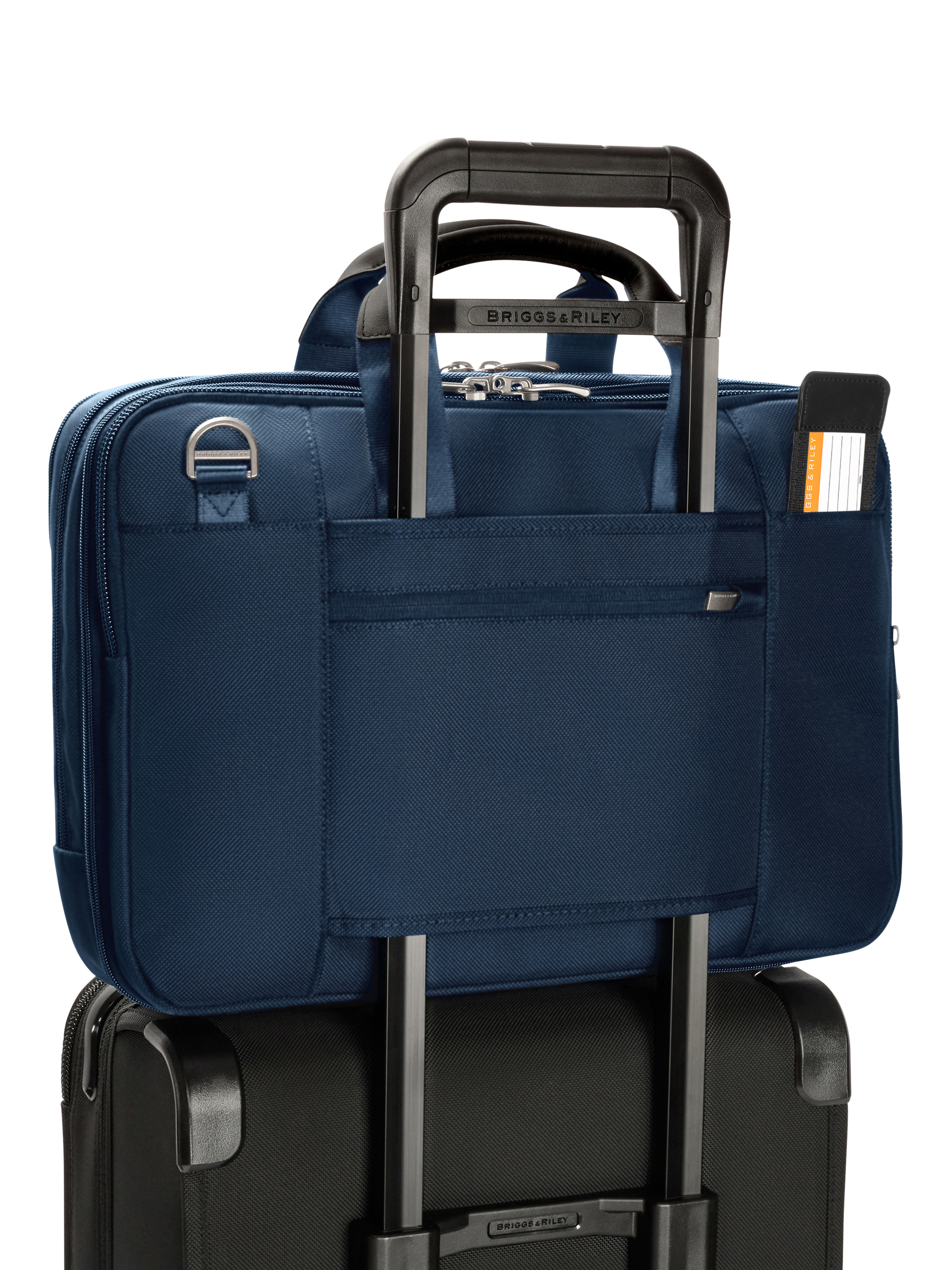 The ideal choice for keeping it compact and then expanding on demand. Equipped with thoughtfully designed tech compartments and pockets, this briefcase expands to create an additional 2.5" of storage space. Fits up to 15" laptops.