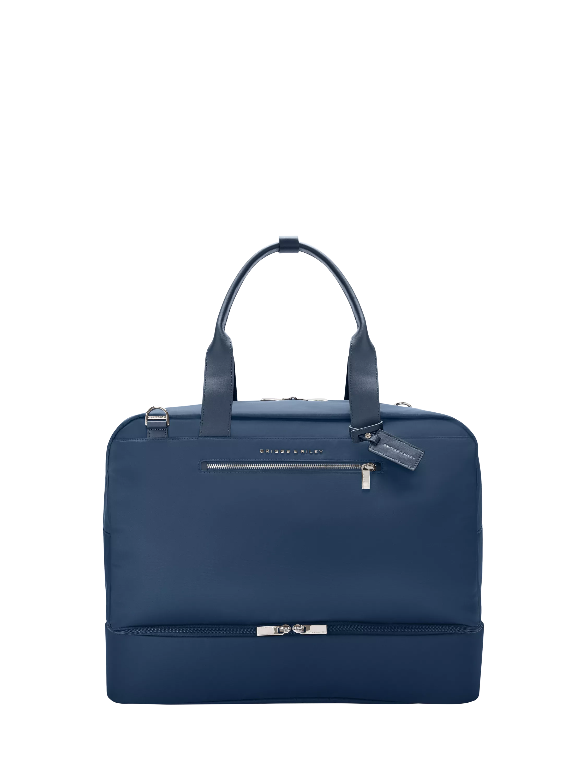 Your ideal weekender bag is here, designed with soft leather handles, plus a shoulder strap for versatility. There's a spacious compartment for your clothes and laptop, and airport-friendly features like a SpeedThru pocket and a slip-through back panel to slide over a luggage handle.