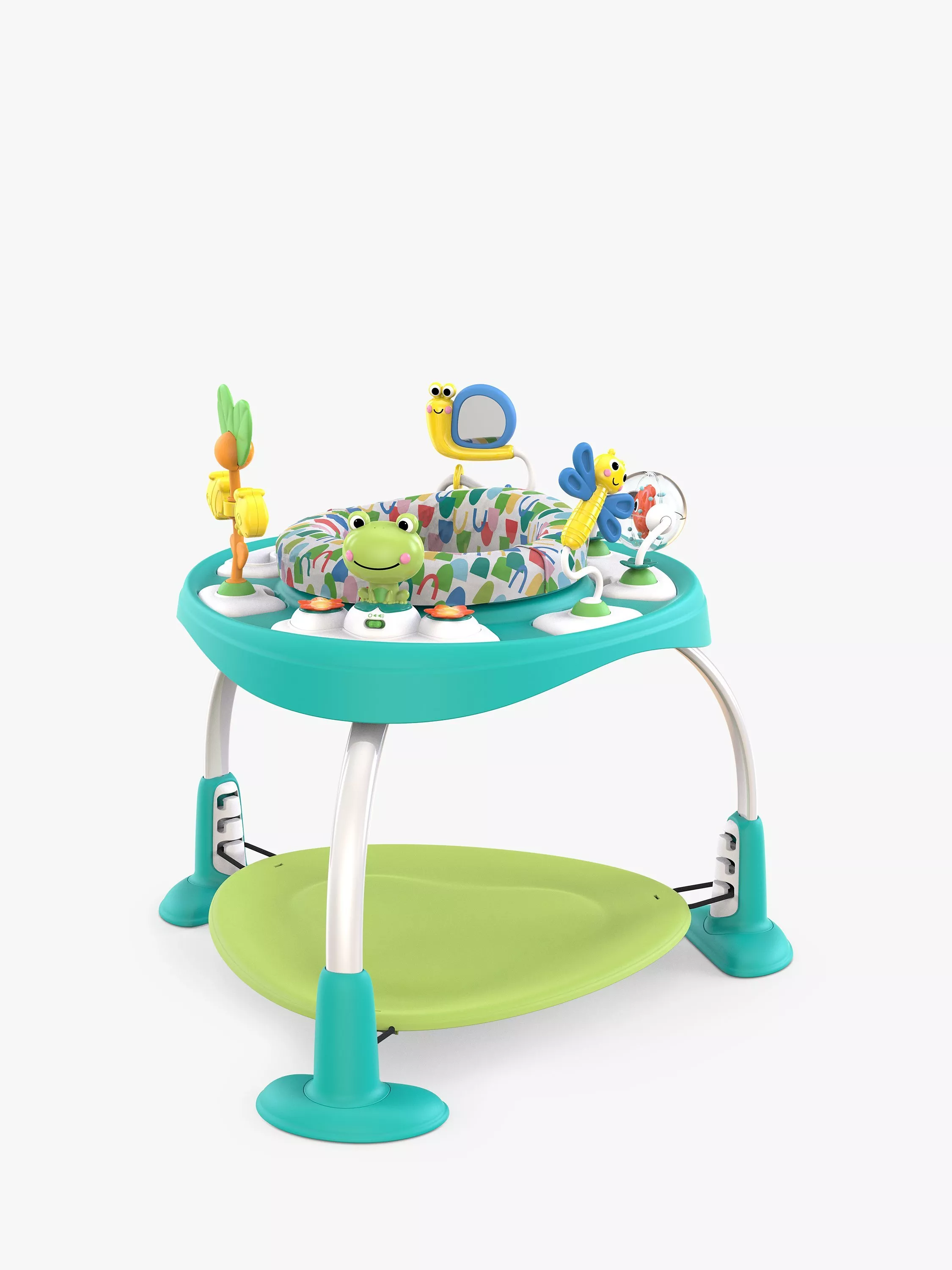 - Grow-with-me bouncy pad adjusts to three heights