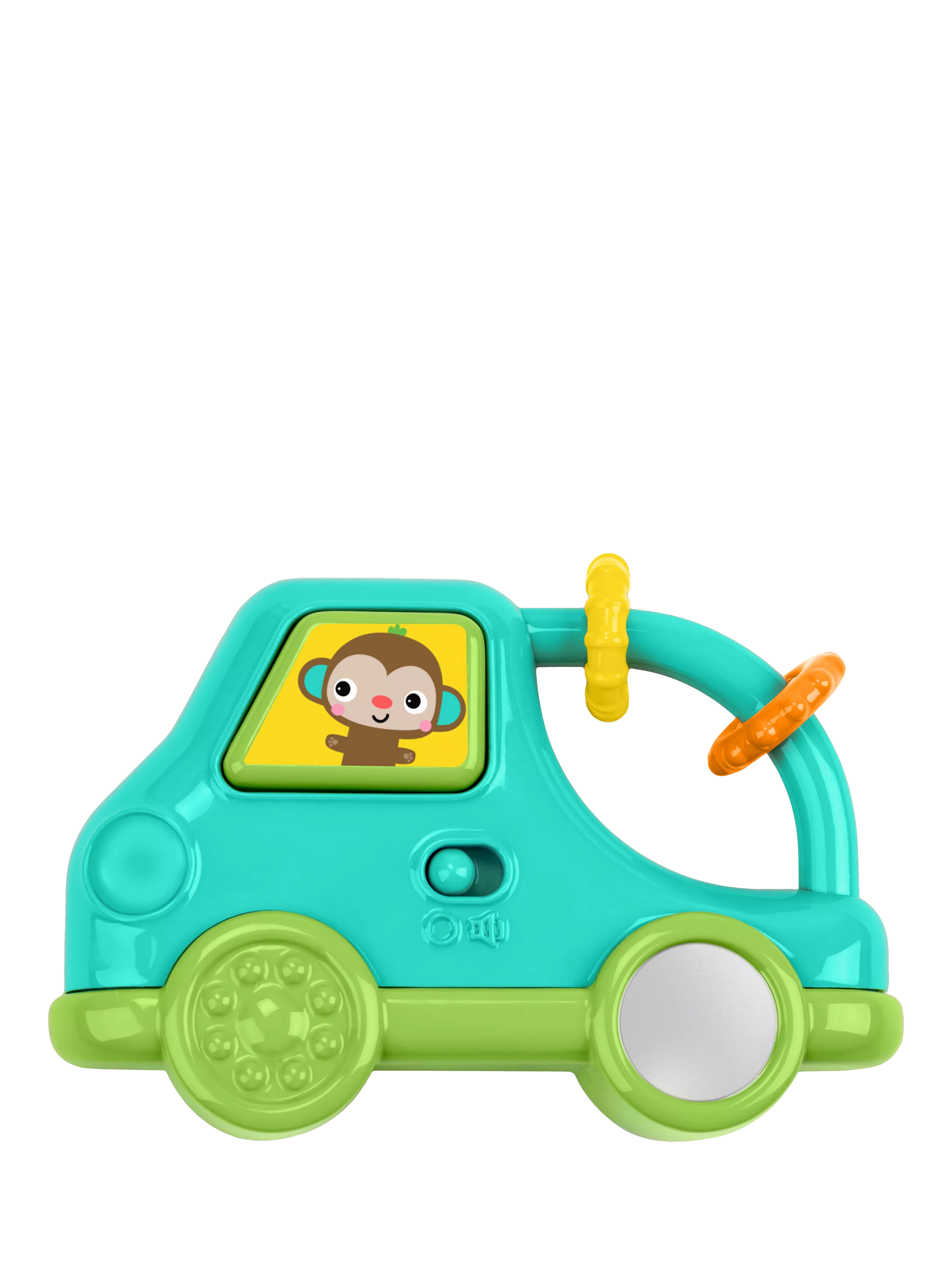 Designed for ages 3 months and up, this entertaining truck toy includes a bead chaser for open-ended play. Introduce self-discovery with the baby-safe 'tyre' mirror! An easy-grasp handle makes it easy for baby to monkey around with their primate pal, bringing truckloads of playtime wherever they go. Explore the textured tyres and beads for more sensory fun.