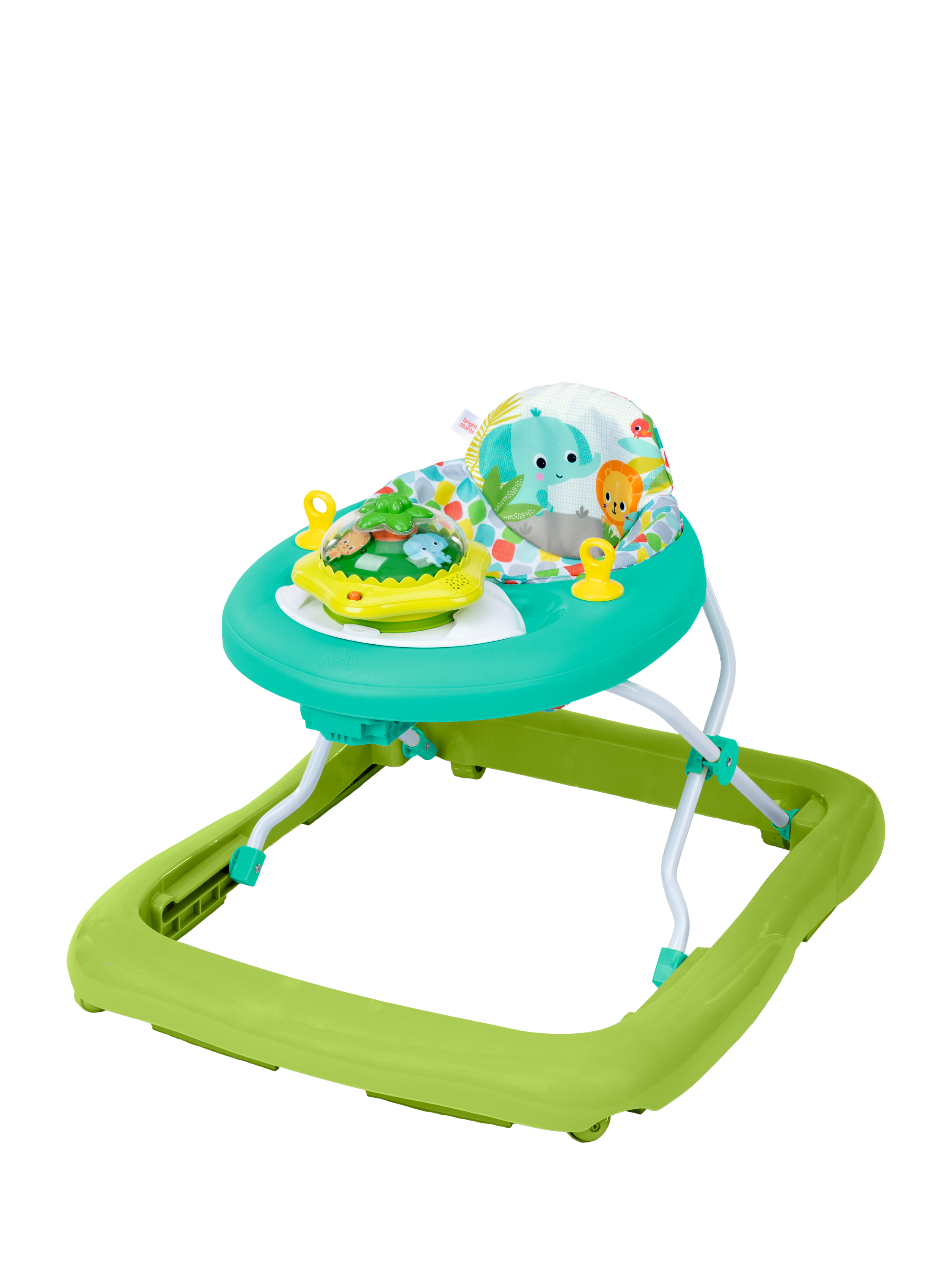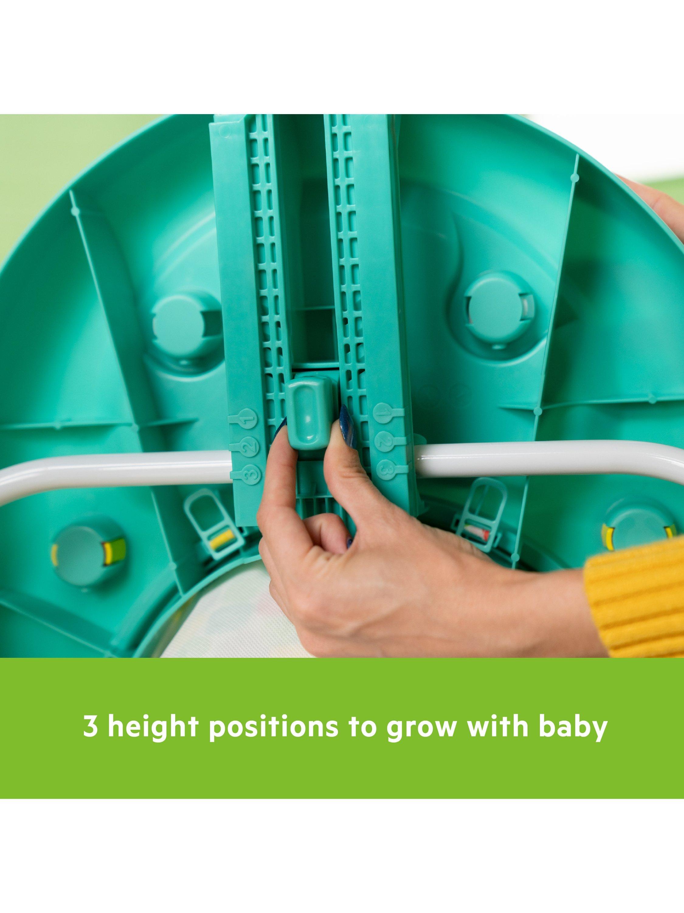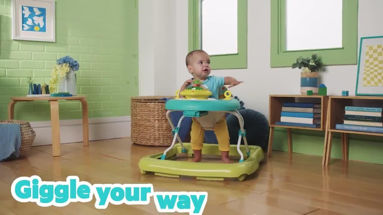 Rewarding them with lights and sounds as they work towards their first steps, this developmental walker includes a removable light-up spinner toy. Baby will love playing with the cause-and-effect toy in 2 modes: walker mode and floor play mode. With 20+ minutes of music, the glowing and spinning toy keeps baby entertained while building gross and fine motor skills. They love to see what they can make happen with every press of the top button! For even more fun, add baby’s favourite toys to the walker with two included loops! 3 adjustable height positions will make this your go-to walker from ages 6 to 18 months or until baby can walk on their own. The extra-comfy seat pad is machine washable for easy cleanup. When playtime is over, the walker folds flat for convenient storage & travel.
