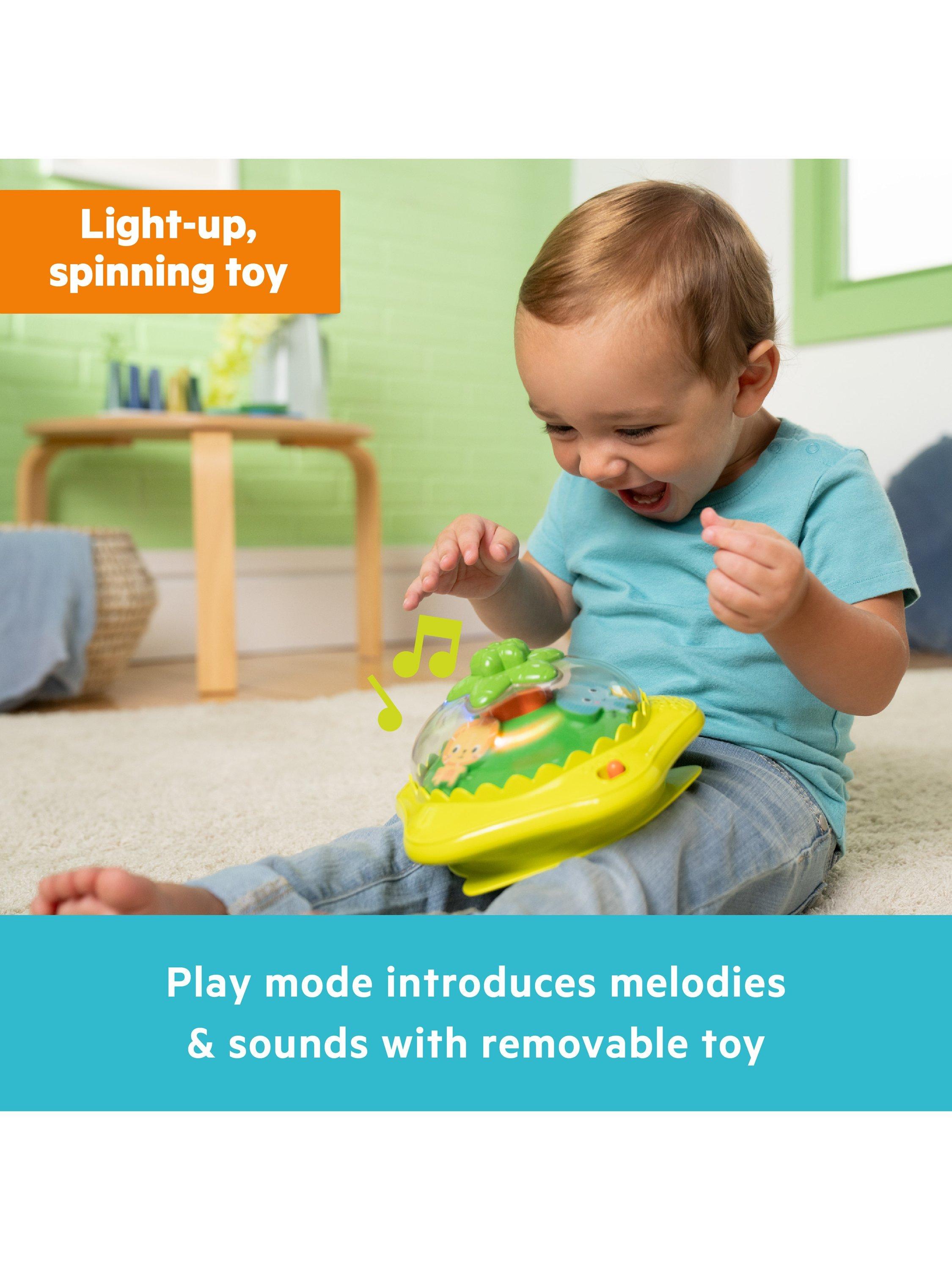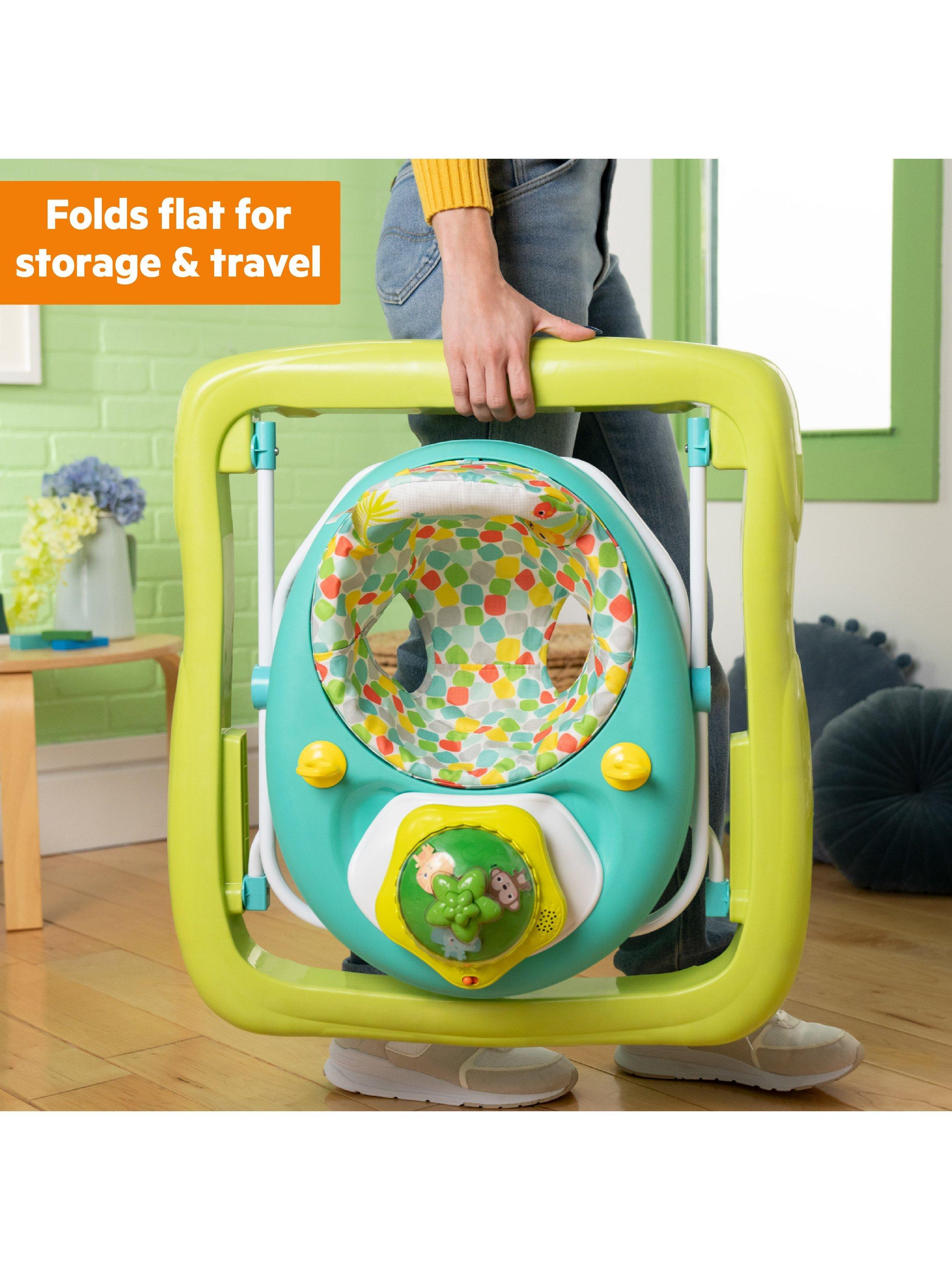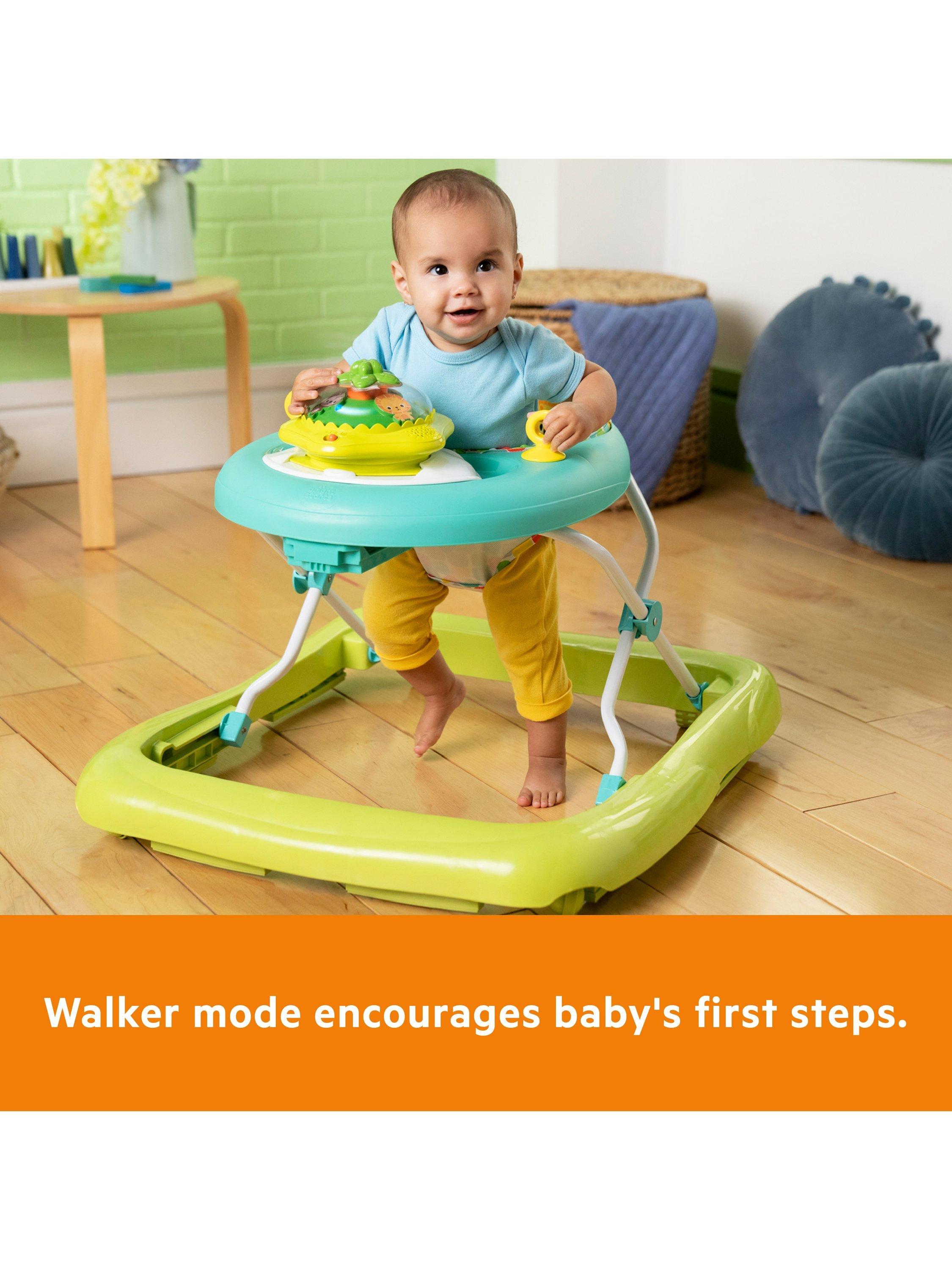 Rewarding them with lights and sounds as they work towards their first steps, this developmental walker includes a removable light-up spinner toy. Baby will love playing with the cause-and-effect toy in 2 modes: walker mode and floor play mode. With 20+ minutes of music, the glowing and spinning toy keeps baby entertained while building gross and fine motor skills. They love to see what they can make happen with every press of the top button! For even more fun, add baby’s favourite toys to the walker with two included loops! 3 adjustable height positions will make this your go-to walker from ages 6 to 18 months or until baby can walk on their own. The extra-comfy seat pad is machine washable for easy cleanup. When playtime is over, the walker folds flat for convenient storage & travel.