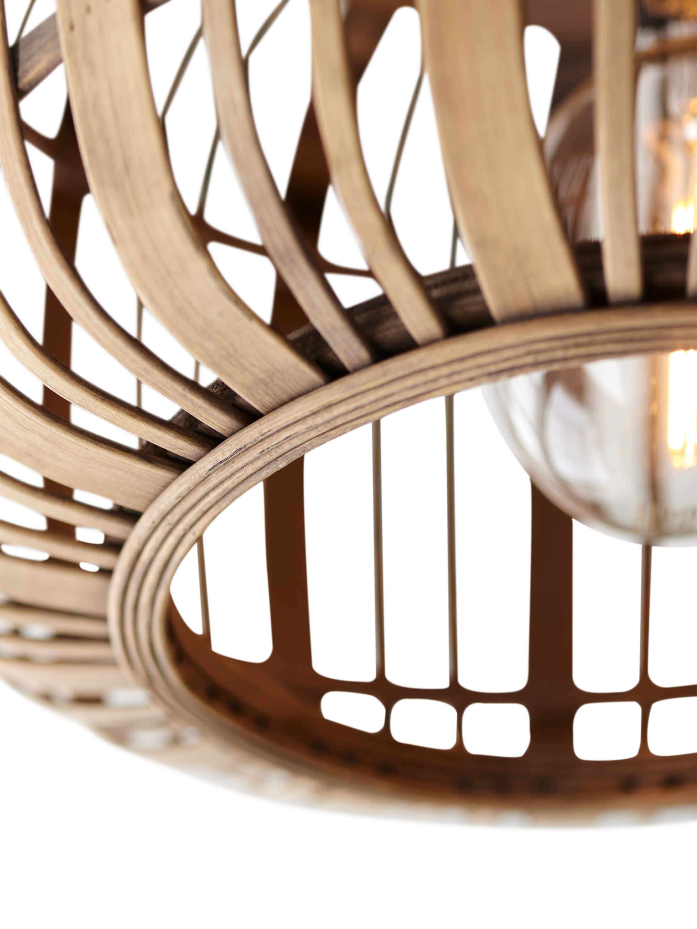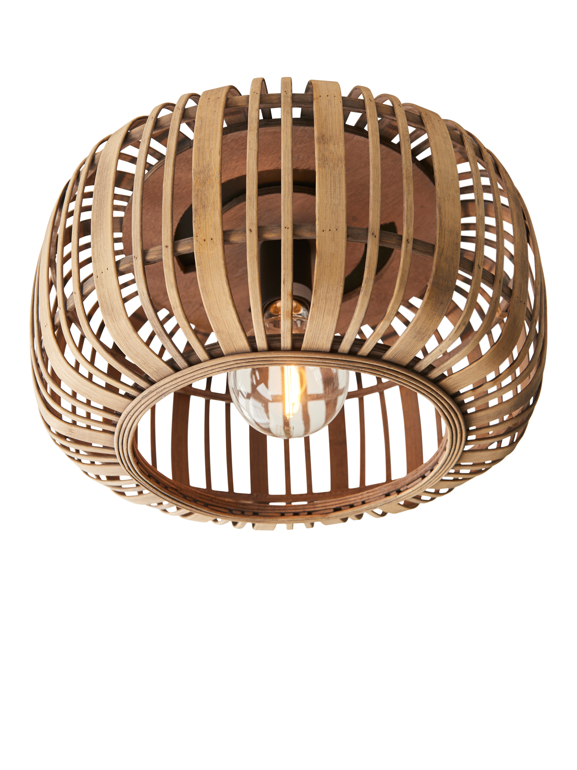 The Woodrow ceiling light adds a decorative touch wherever it's placed, from the living room to the study. Made from bamboo, this natural material has a particularly cosy charm, giving off a warm white glow that creates a homely and comfortable feel. The Woodrow is dimmable when paired with a suitable bulb.