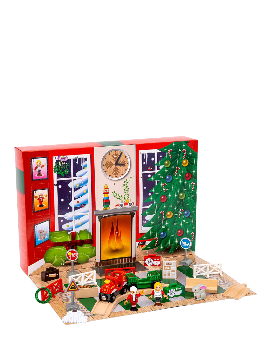 Unwrap the magic of Christmas with the 36100 Advent Calendar. Fold down the front of the box to reveal a Christmas scene full of joy. Each day reveals a BRIO World surprise compatible with our train sets, from tracks and accessories to exclusive seasonal content like Santa’s snowy Steam Engine. Crafted with care from high-quality plastics and FSC®-certified European beech wood, it’s a joyous countdown to the holiday season.