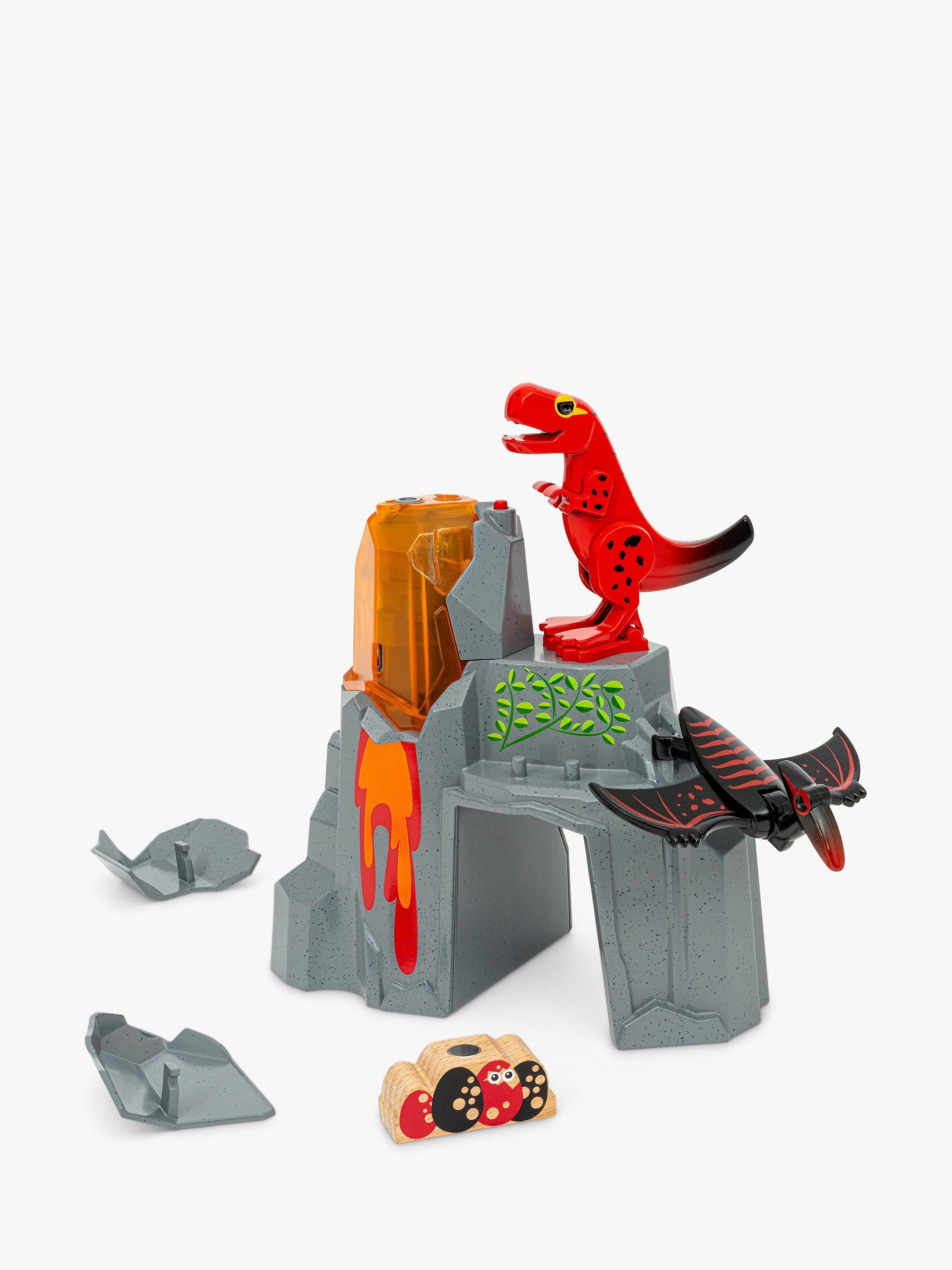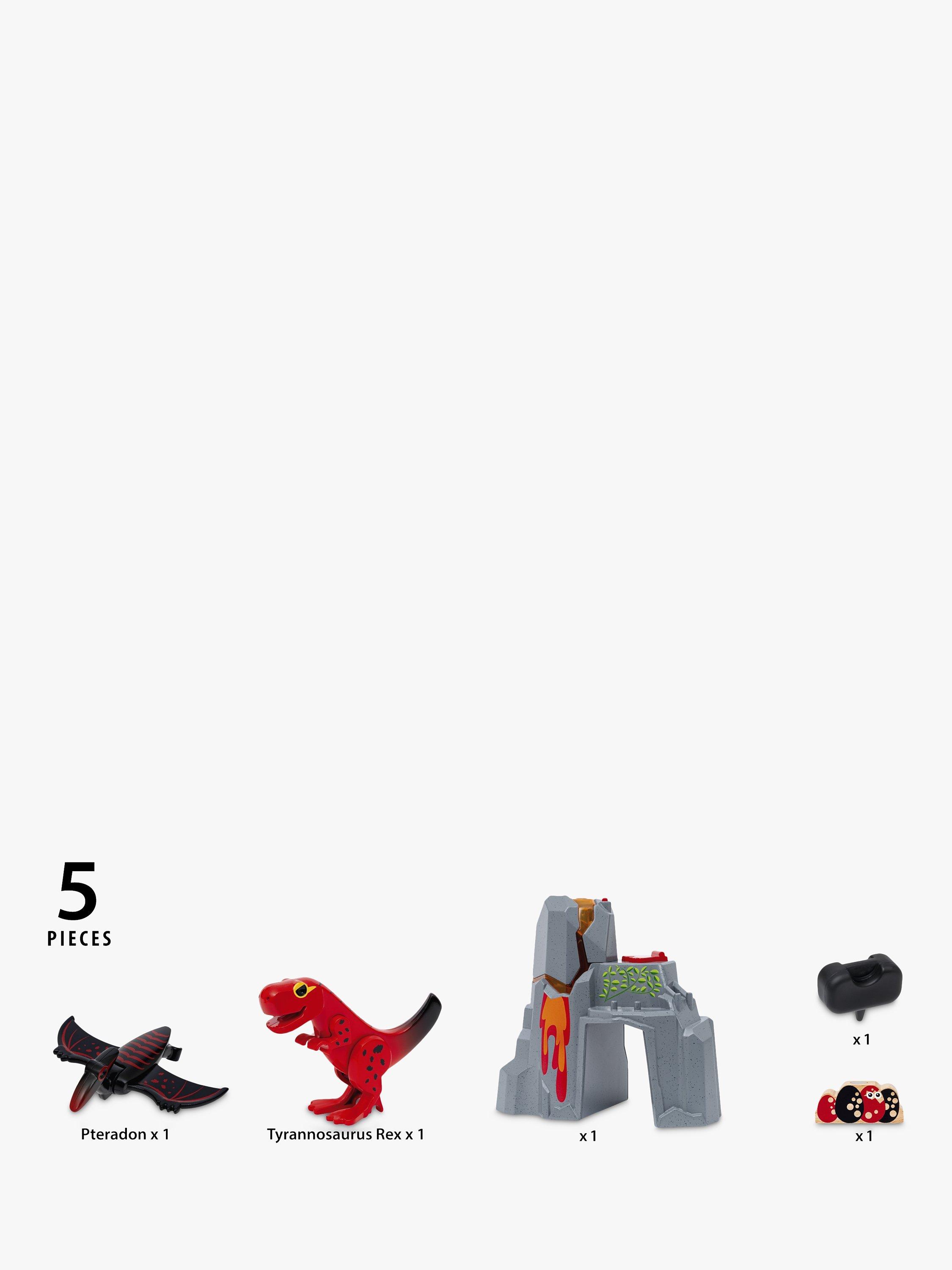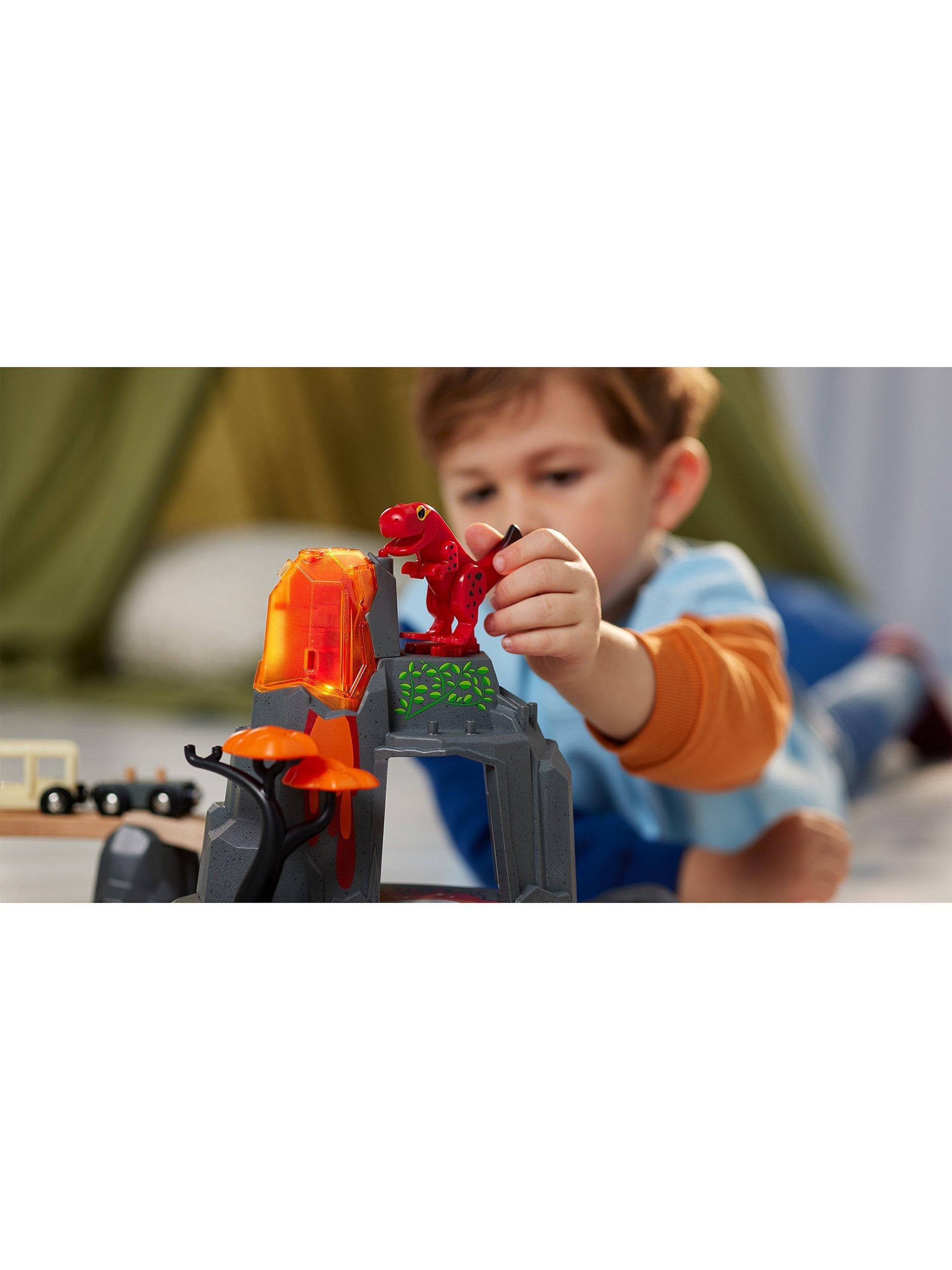 This playset includes: multiple scenic pieces and two playful dinosaurs, designed with unique moving parts so they can interact with the world around them.