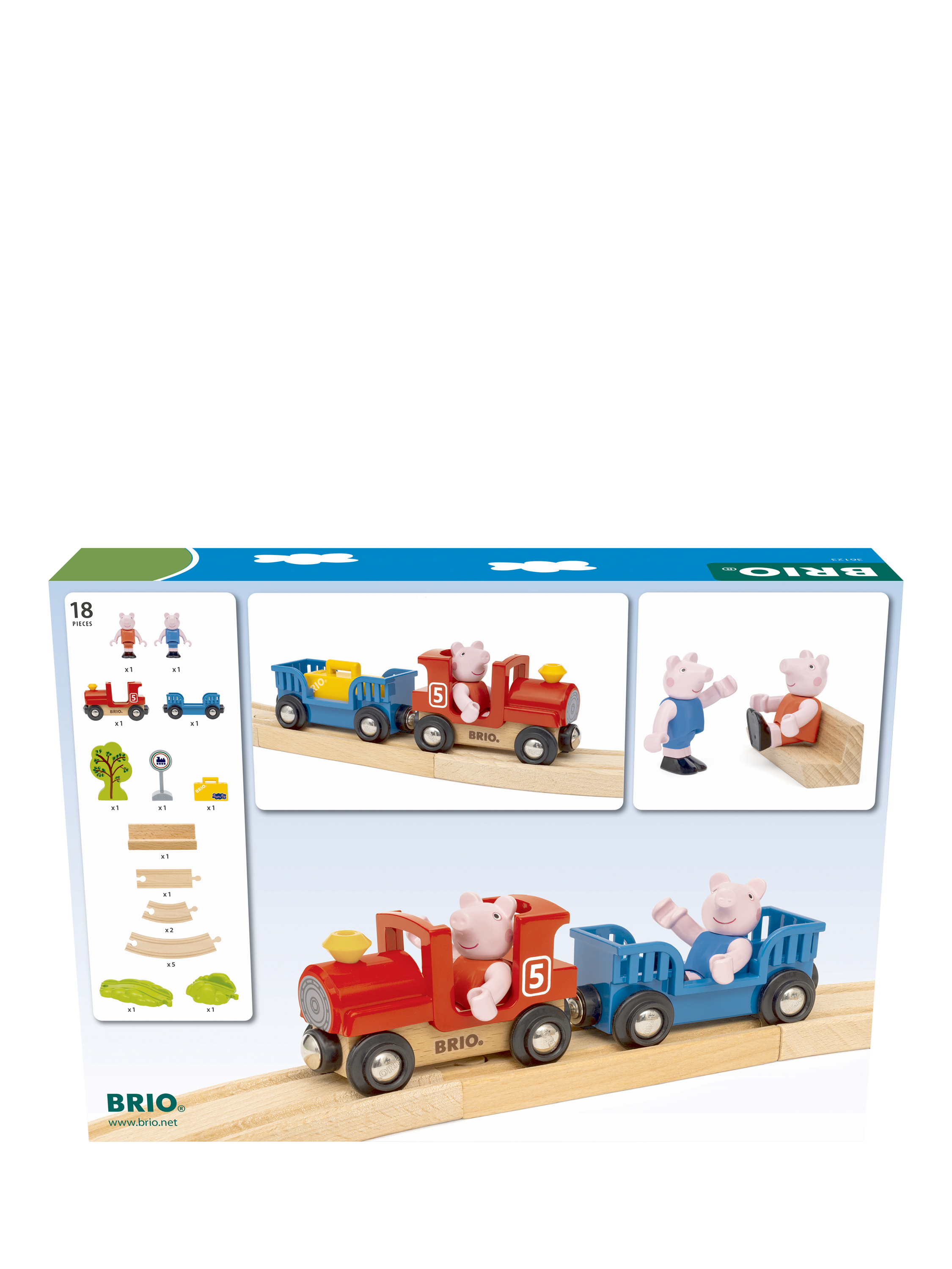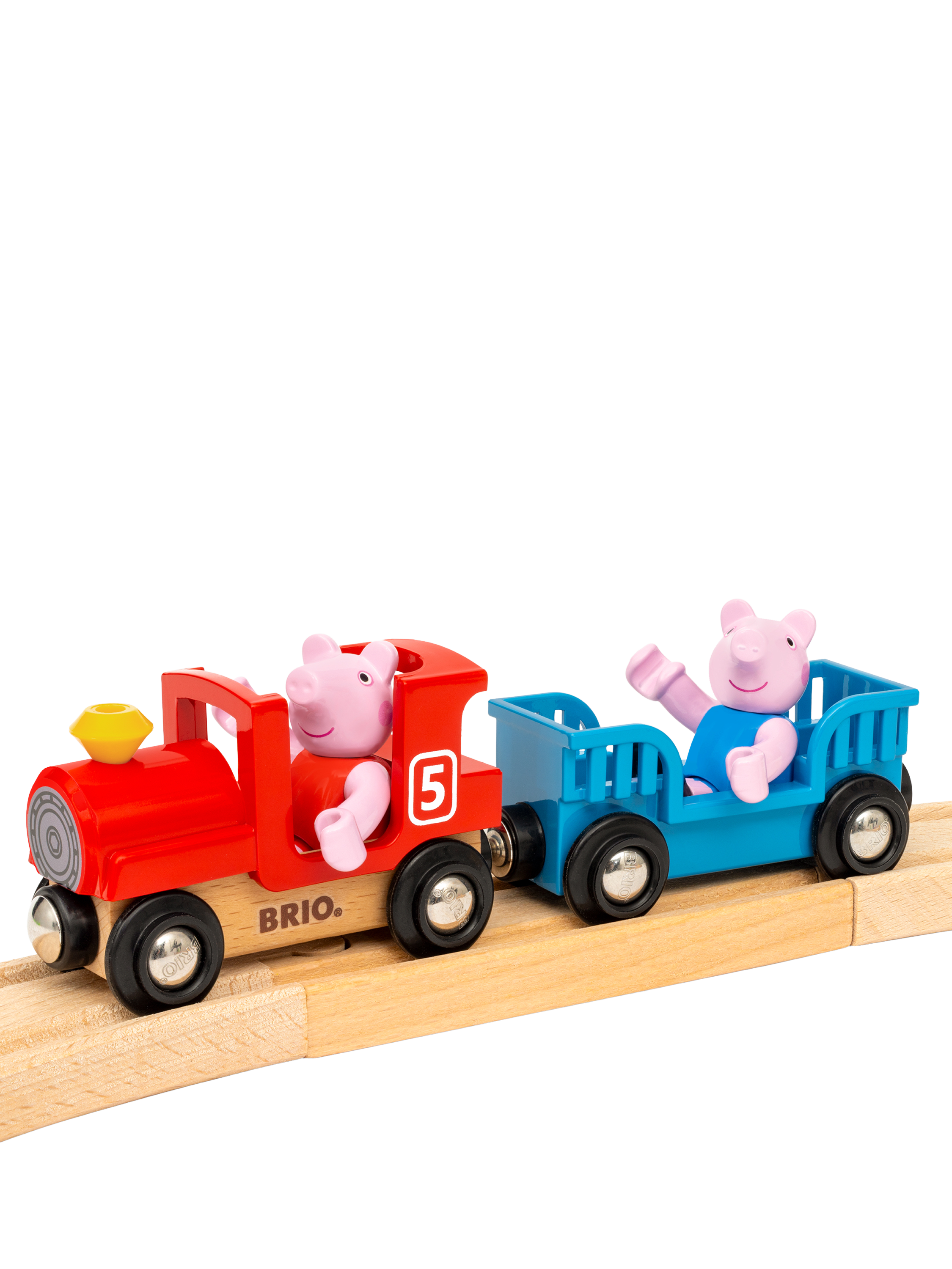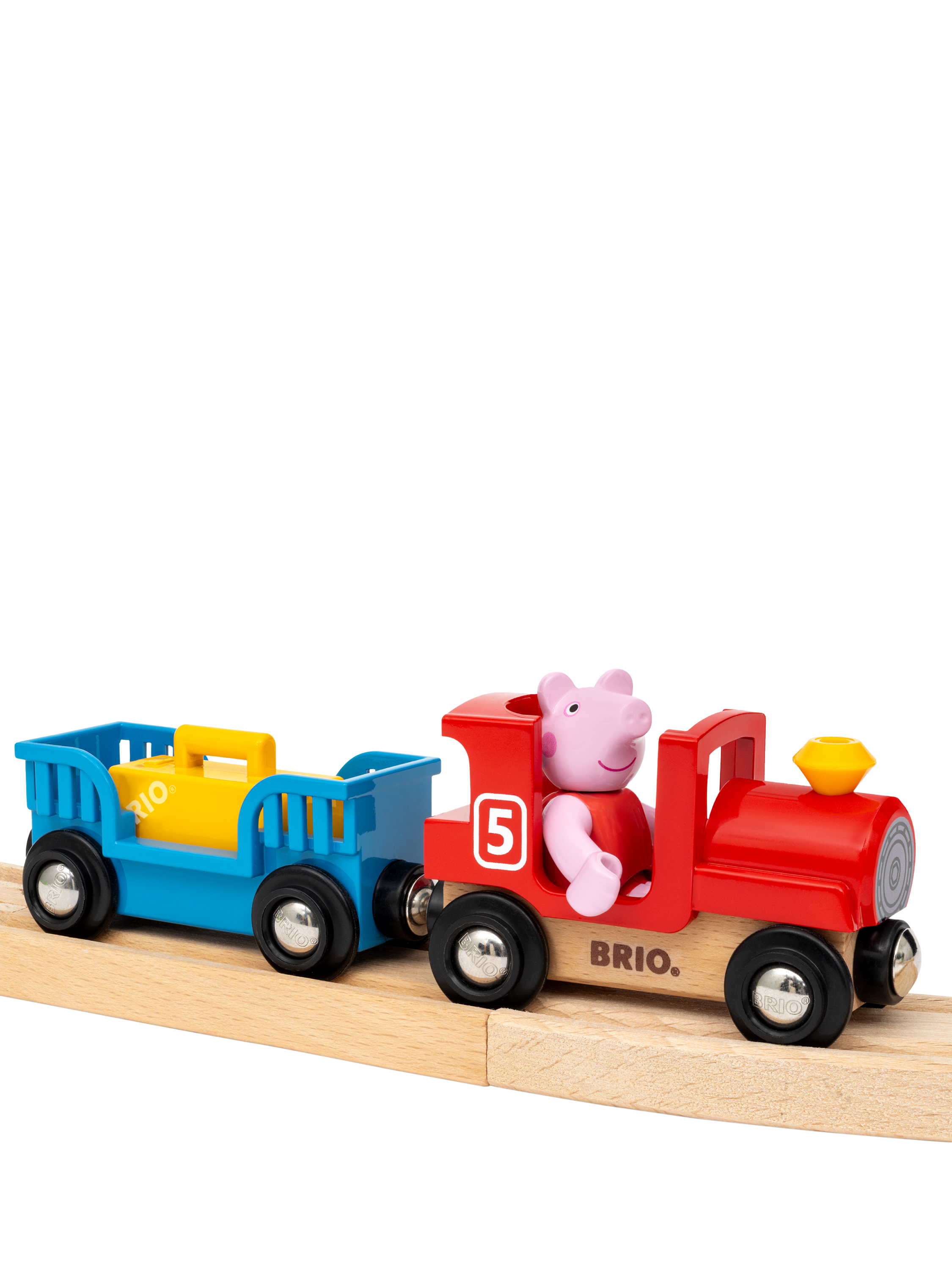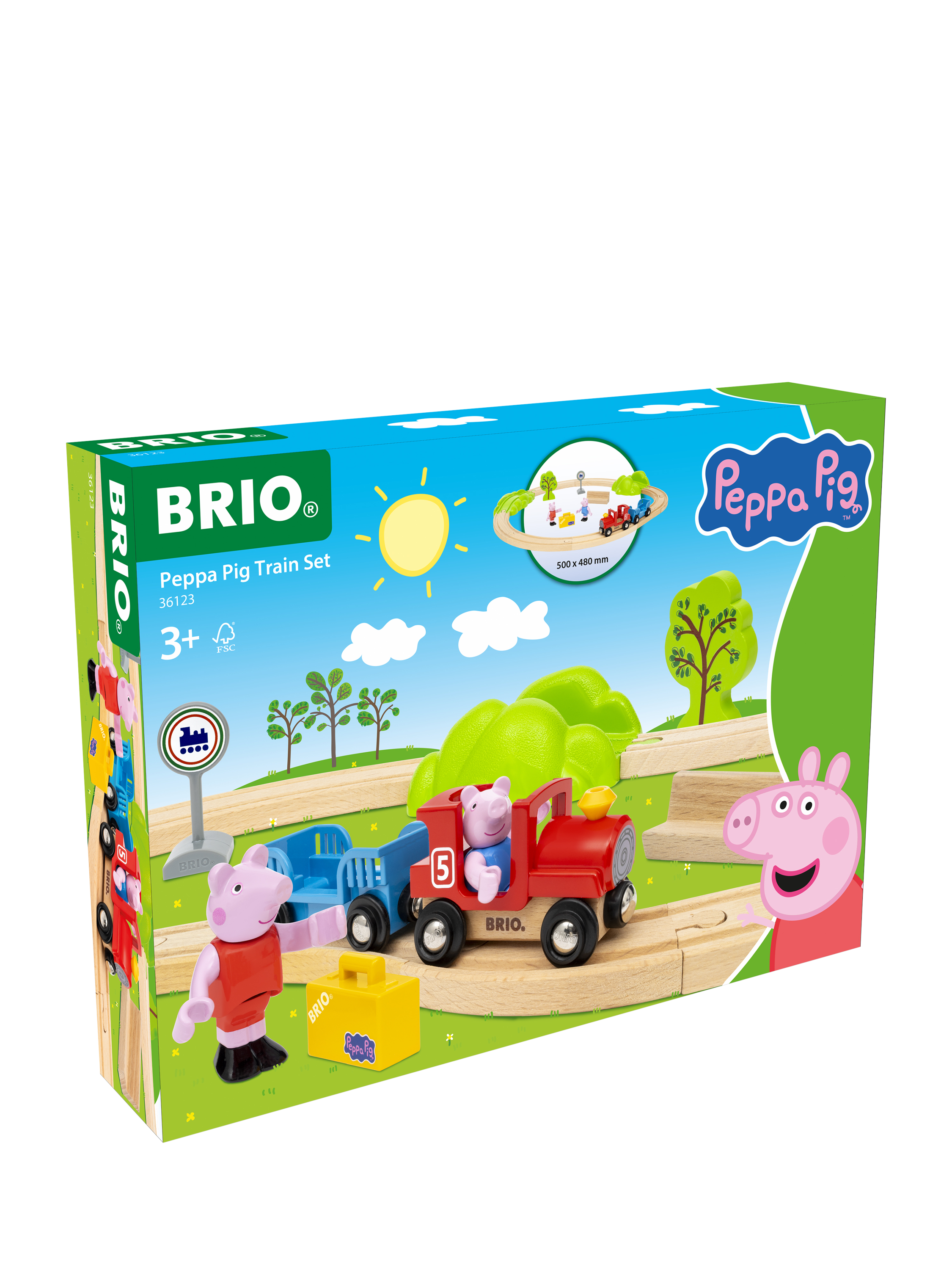 Join Peppa and George on a countryside adventure with the 36123 Peppa Pig Train Set. This colourful train set features Peppa and George figures that fit perfectly in the engine and passenger wagon. Designed for toddlers and preschoolers, the train travels through a green countryside on classic BRIO wooden tracks. What can you see from the window? With fun show-inspired details, it’s perfect for little fans and fully compatible with all BRIO World toys.