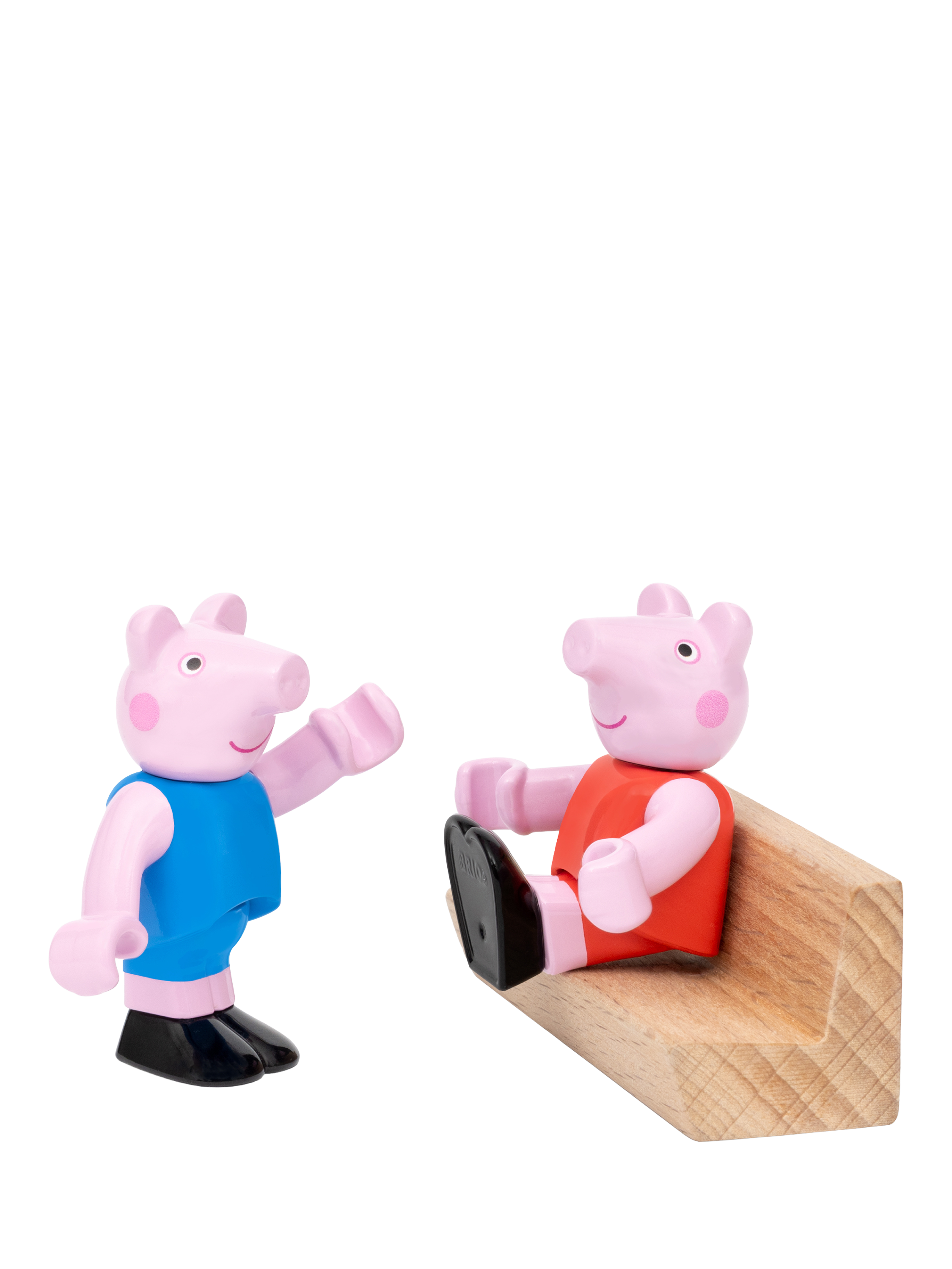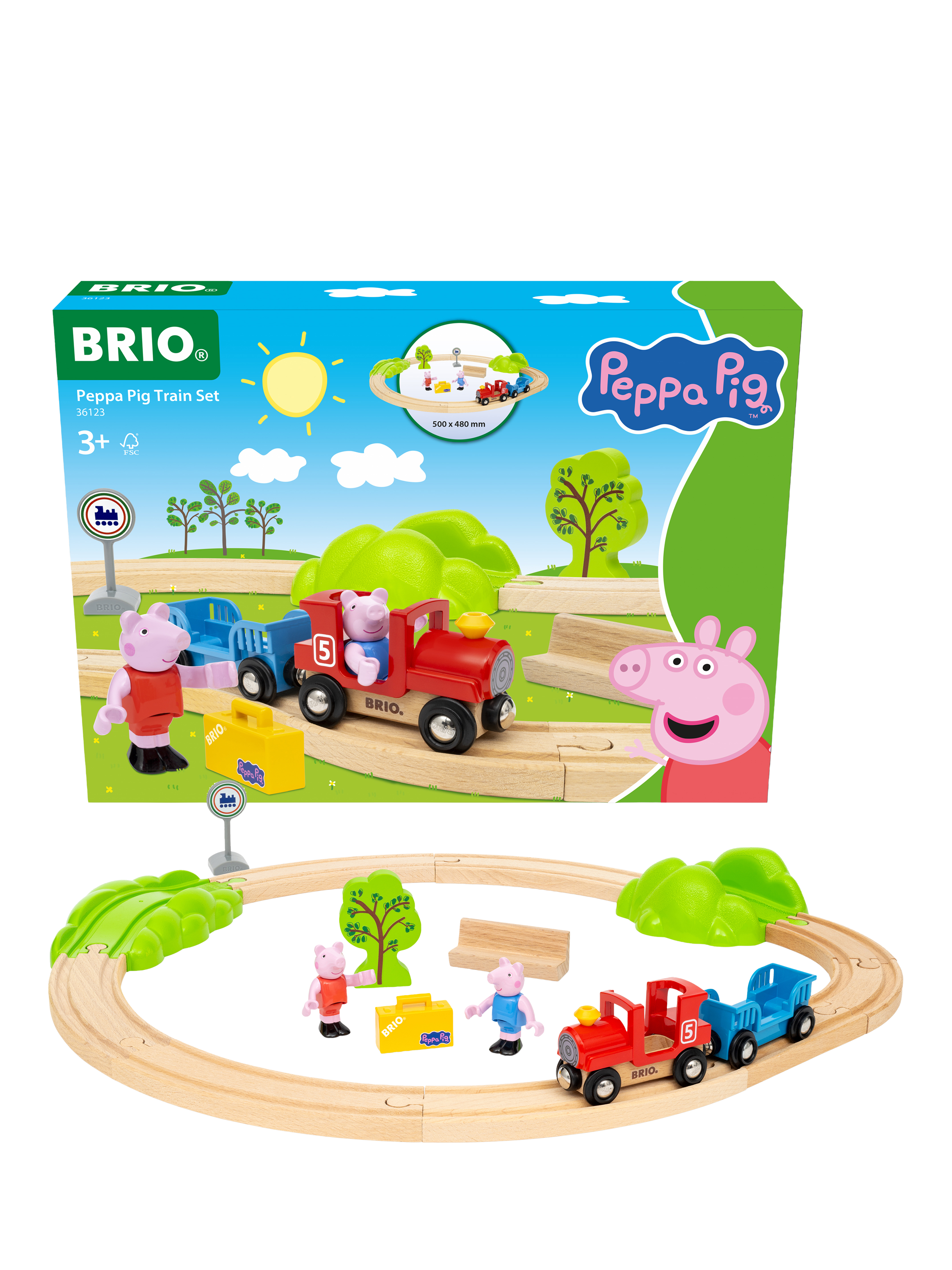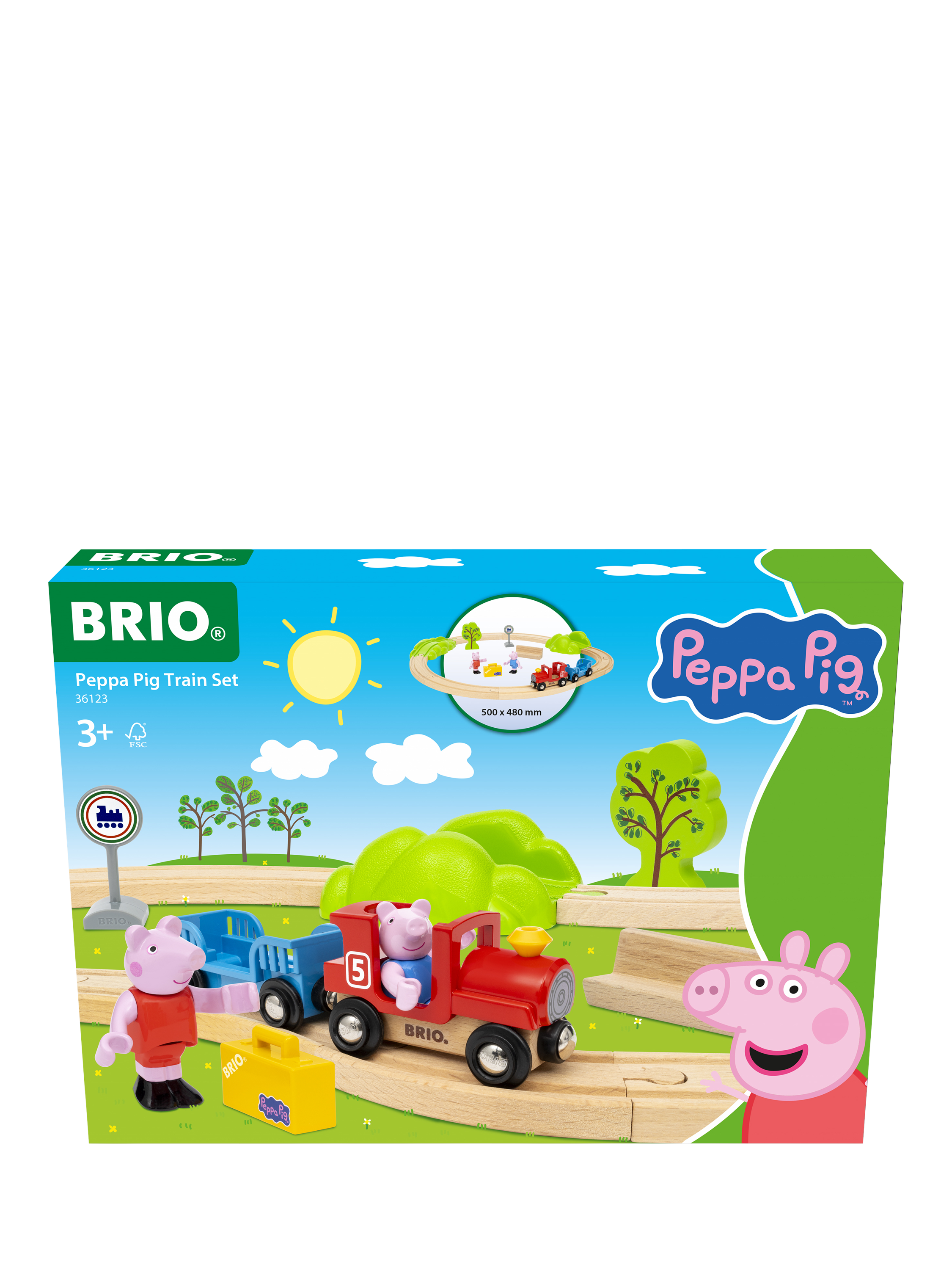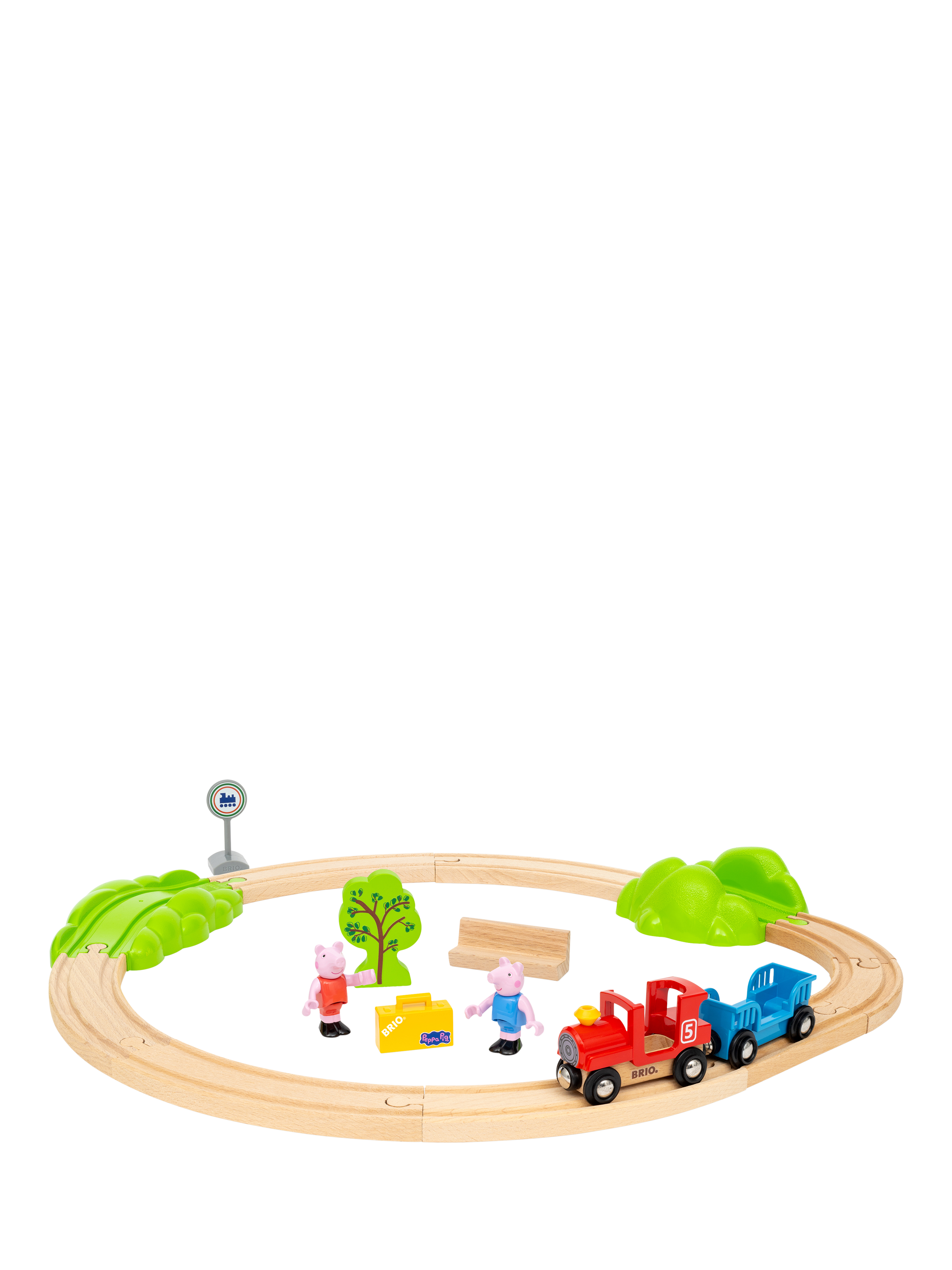 Join Peppa and George on a countryside adventure with the 36123 Peppa Pig Train Set. This colourful train set features Peppa and George figures that fit perfectly in the engine and passenger wagon. Designed for toddlers and preschoolers, the train travels through a green countryside on classic BRIO wooden tracks. What can you see from the window? With fun show-inspired details, it’s perfect for little fans and fully compatible with all BRIO World toys.