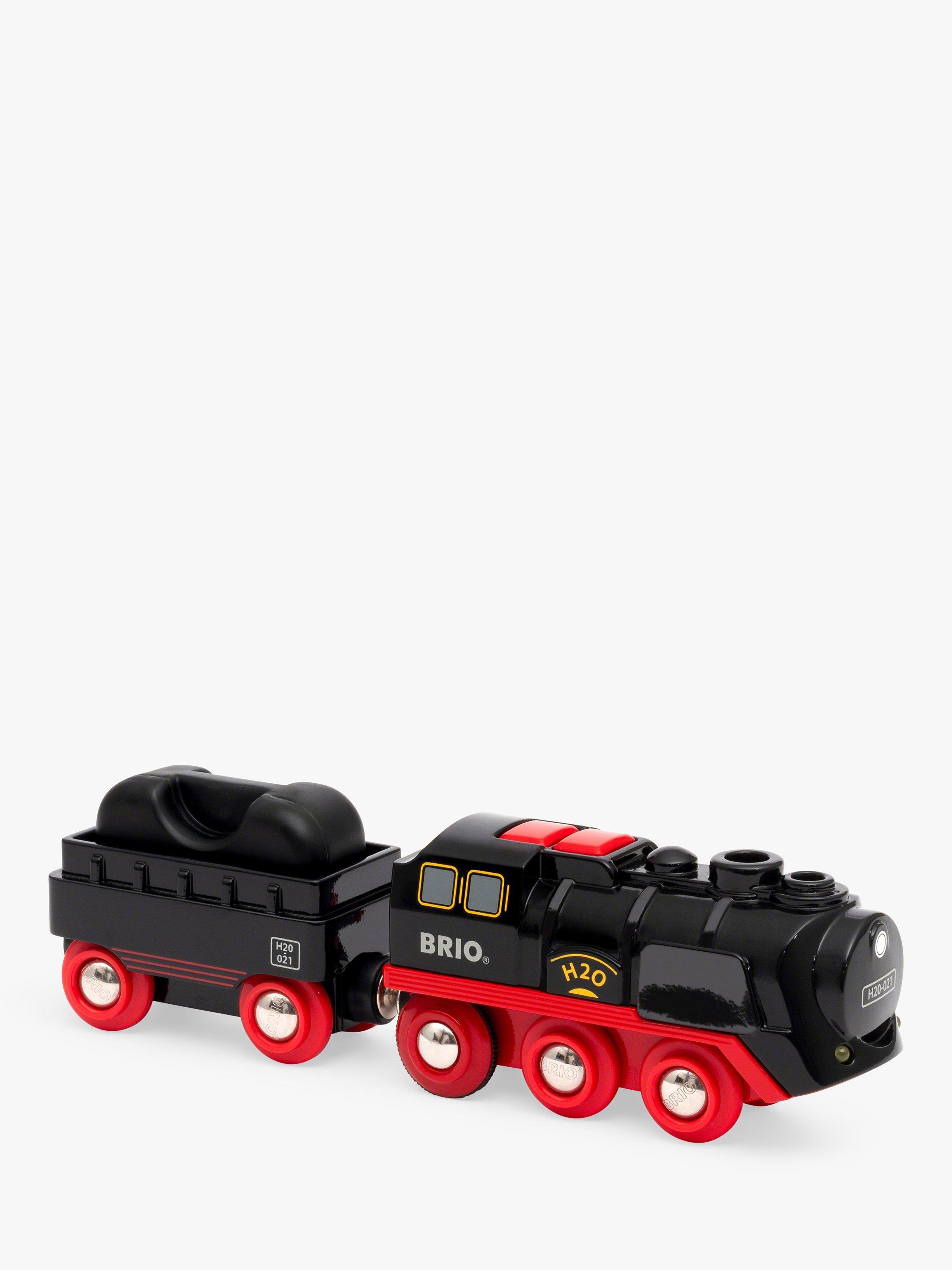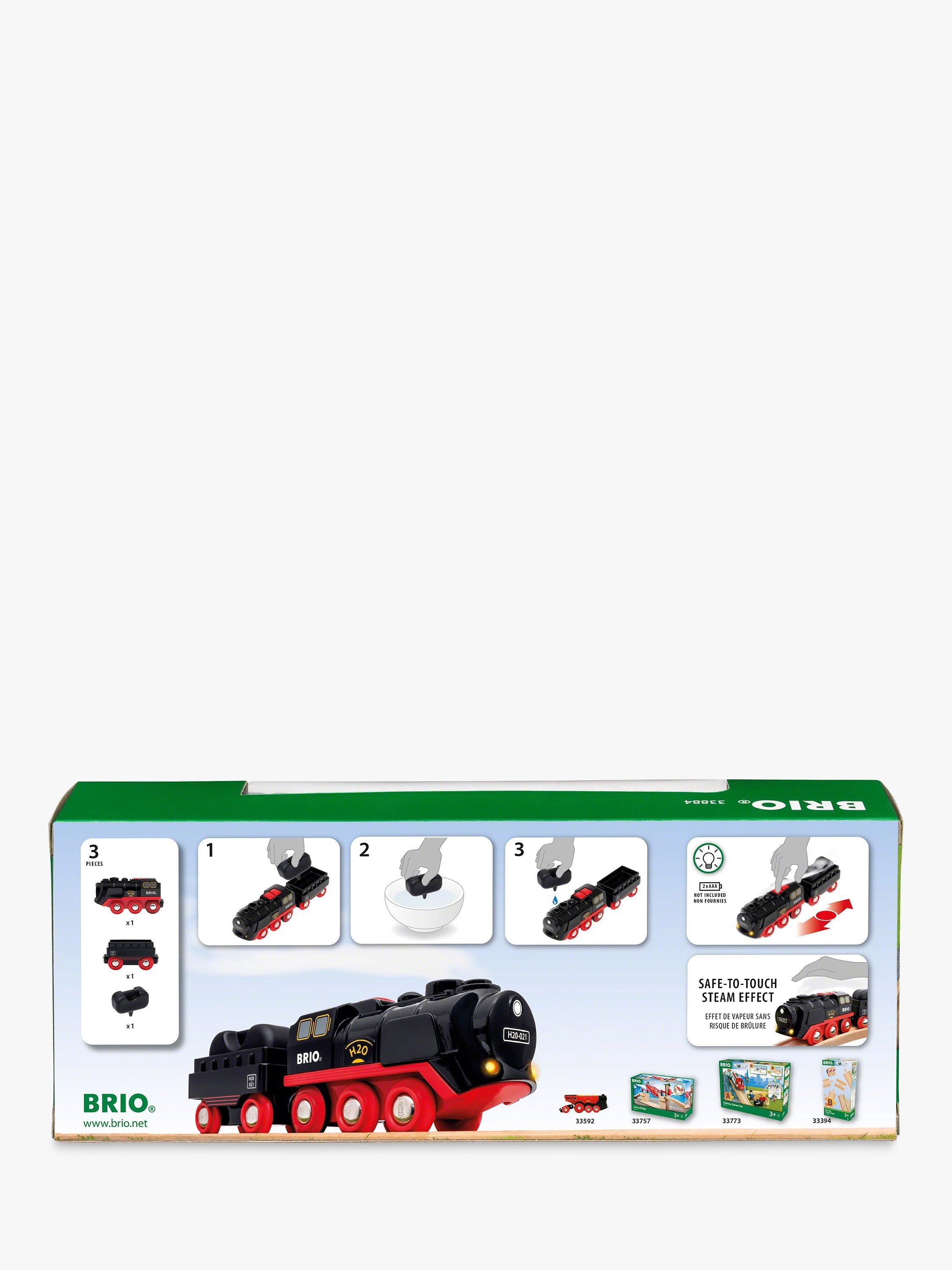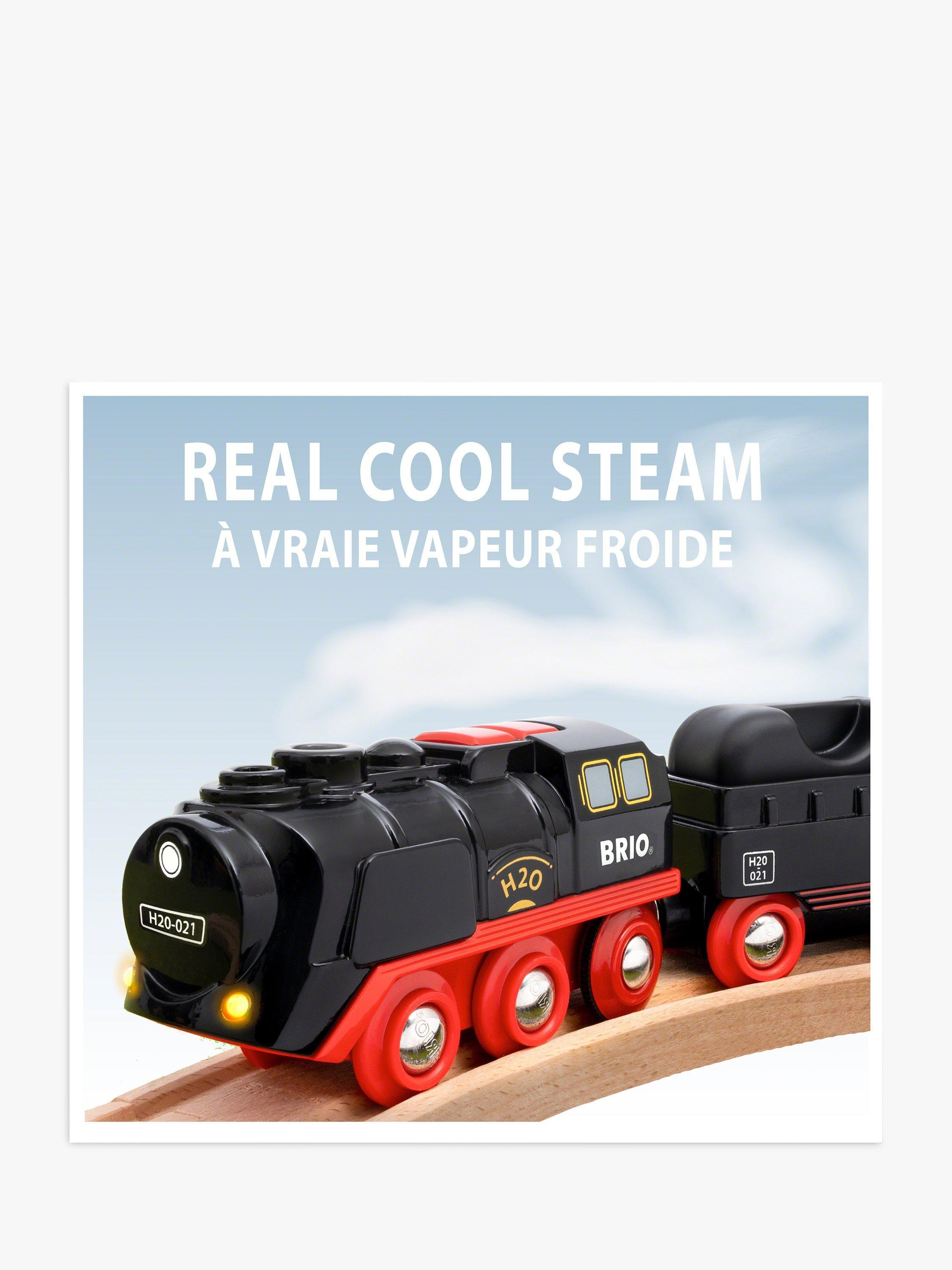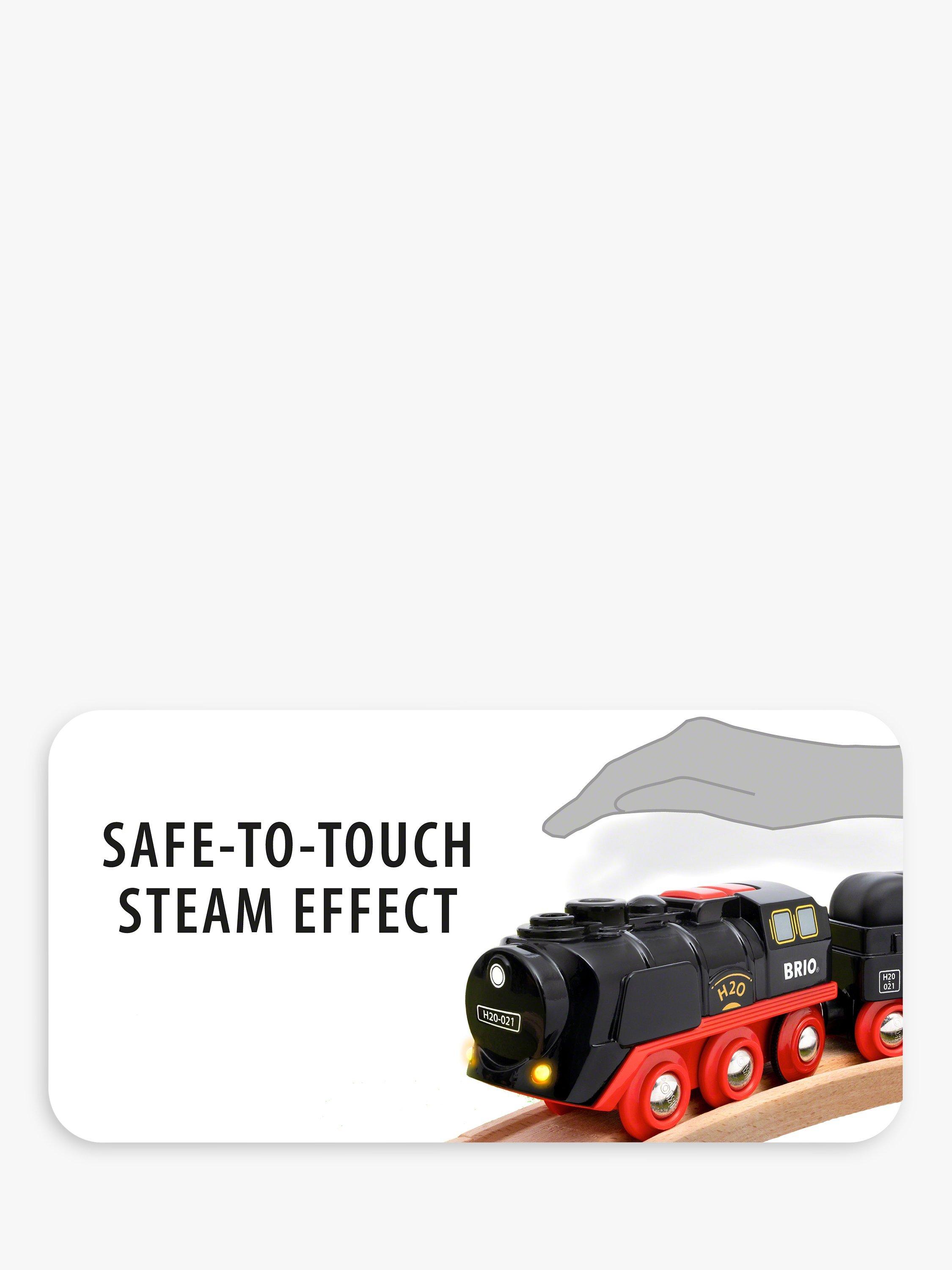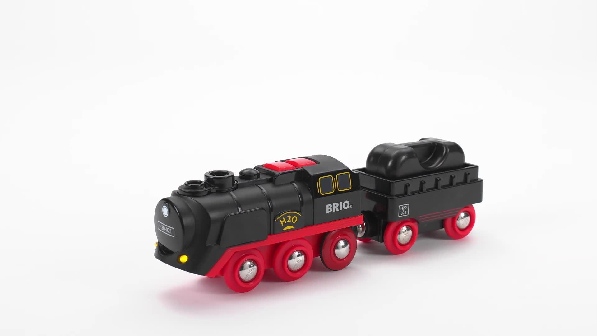 “Full steam ahead!”. Chug around your BRIO World railway with realistic steam effects in the 33884 Battery-Operated Steaming Train.