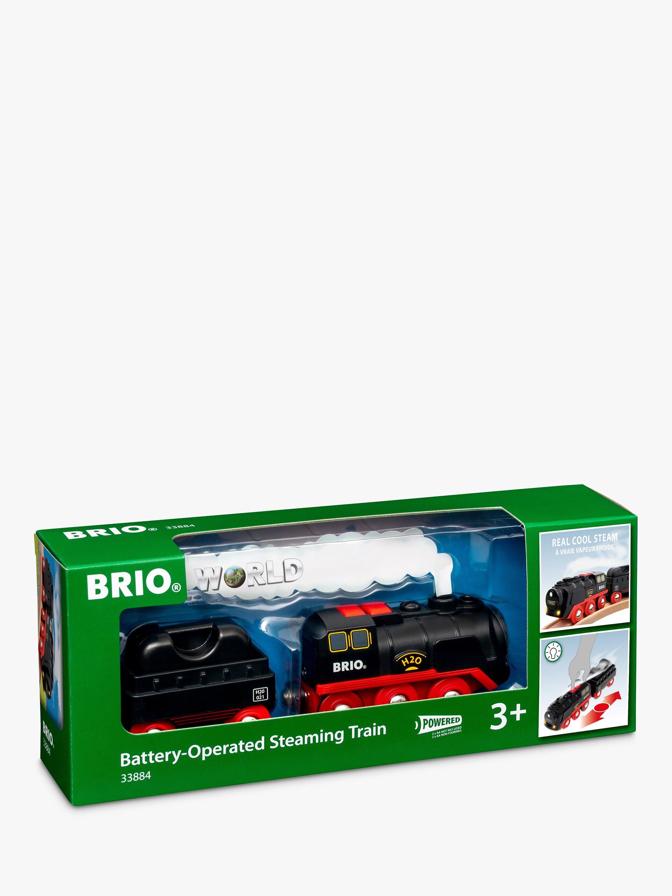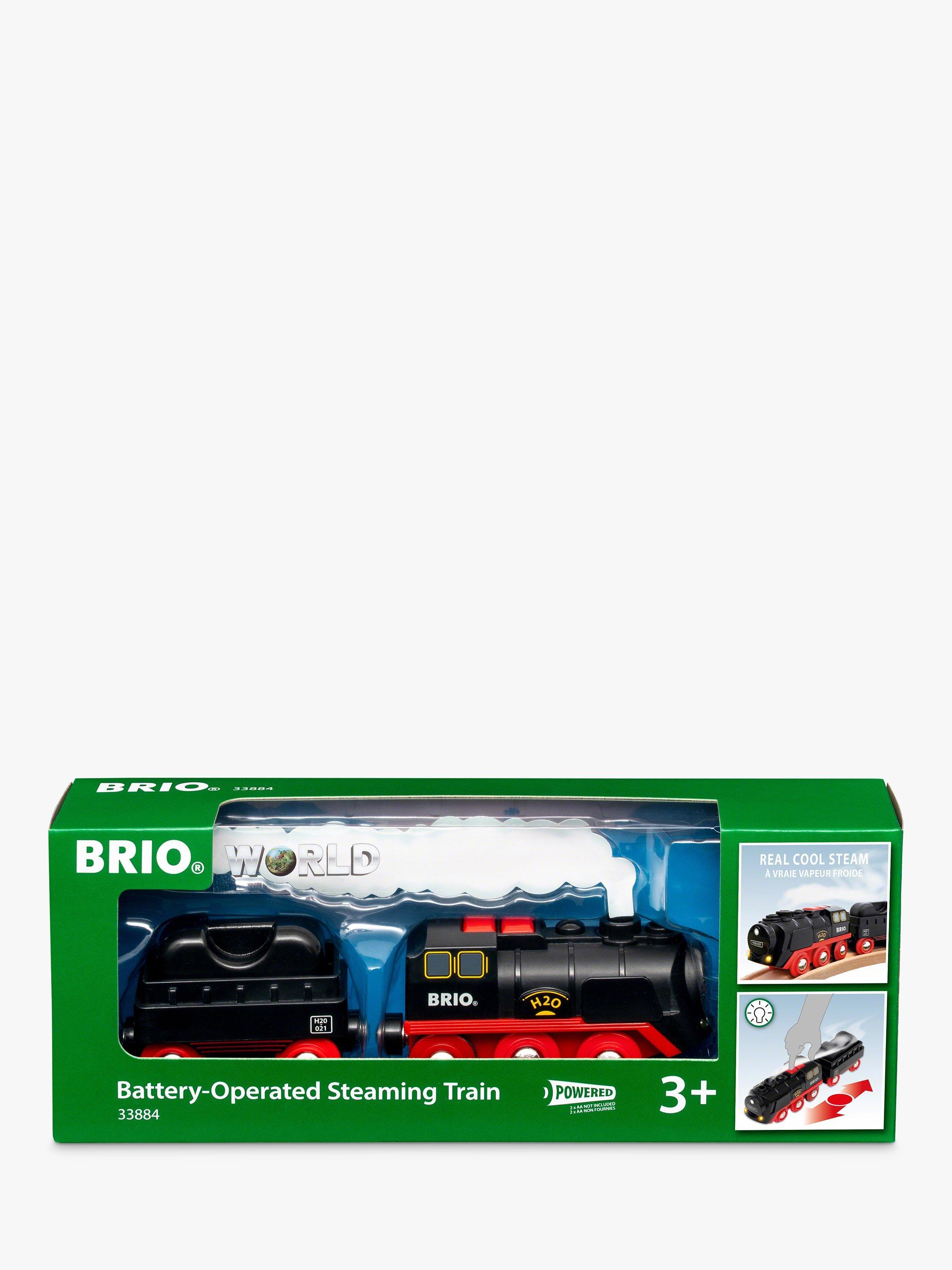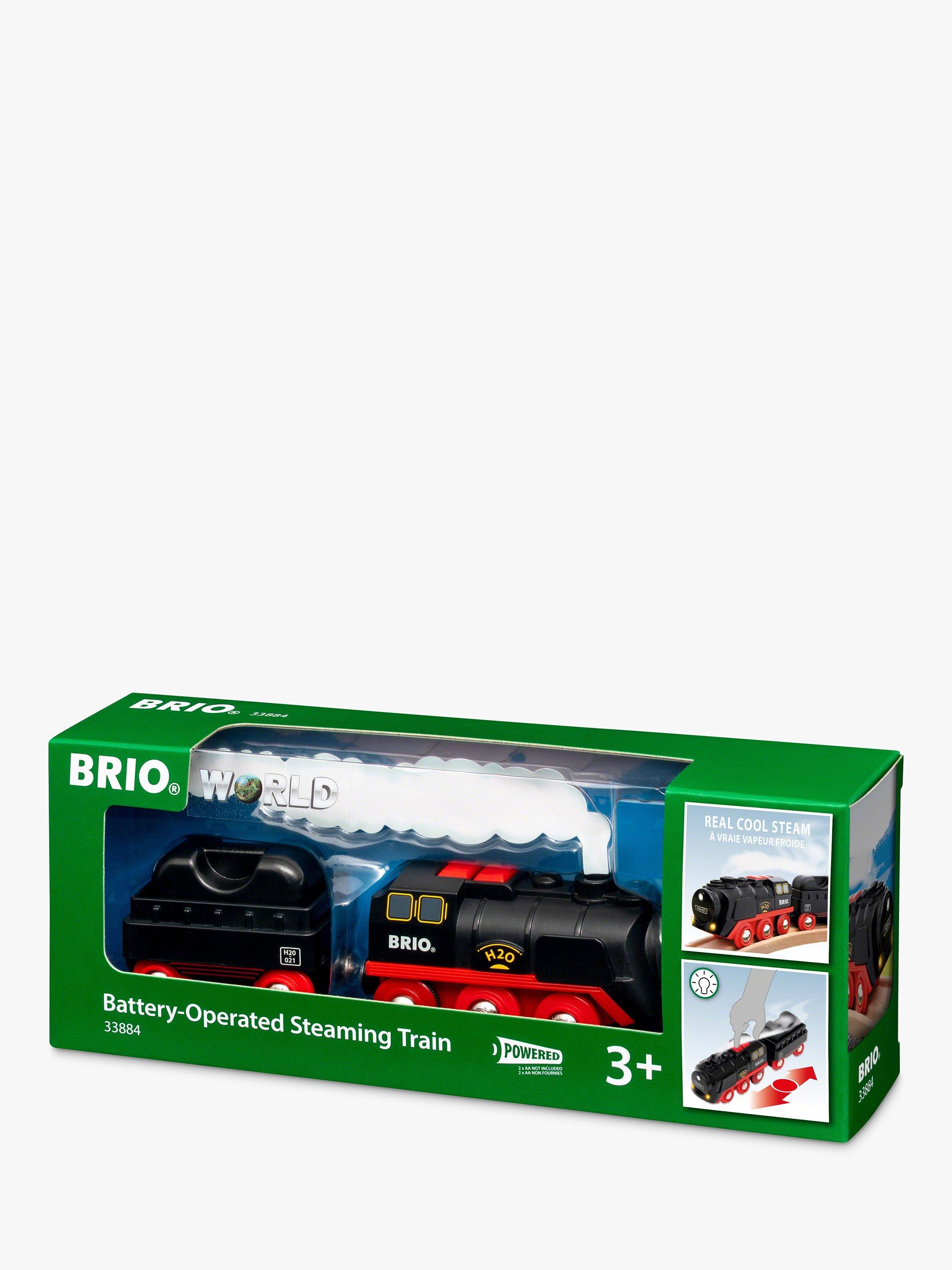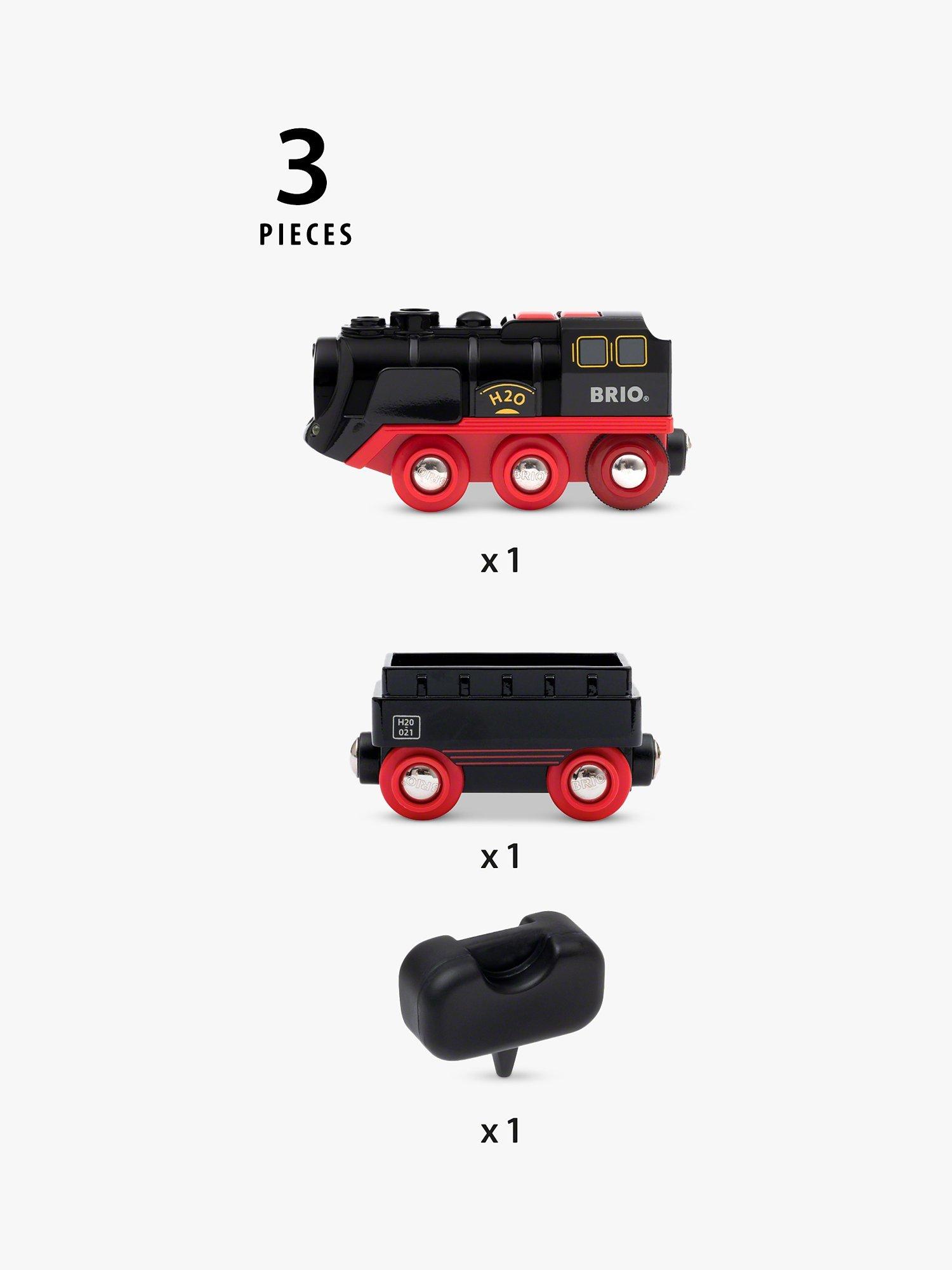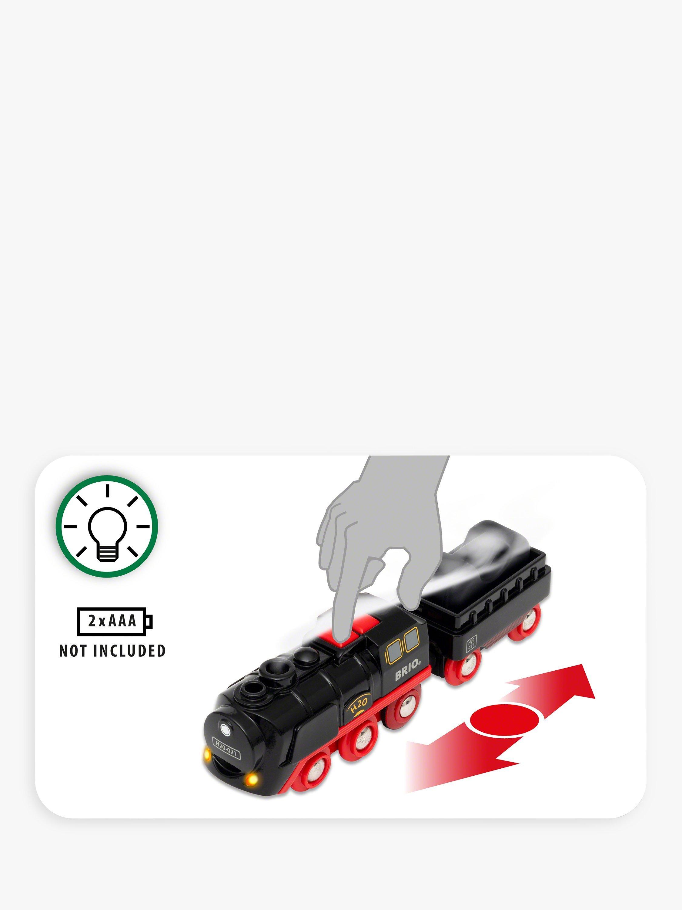 “Full steam ahead!”. Chug around your BRIO World railway with realistic steam effects in the 33884 Battery-Operated Steaming Train.