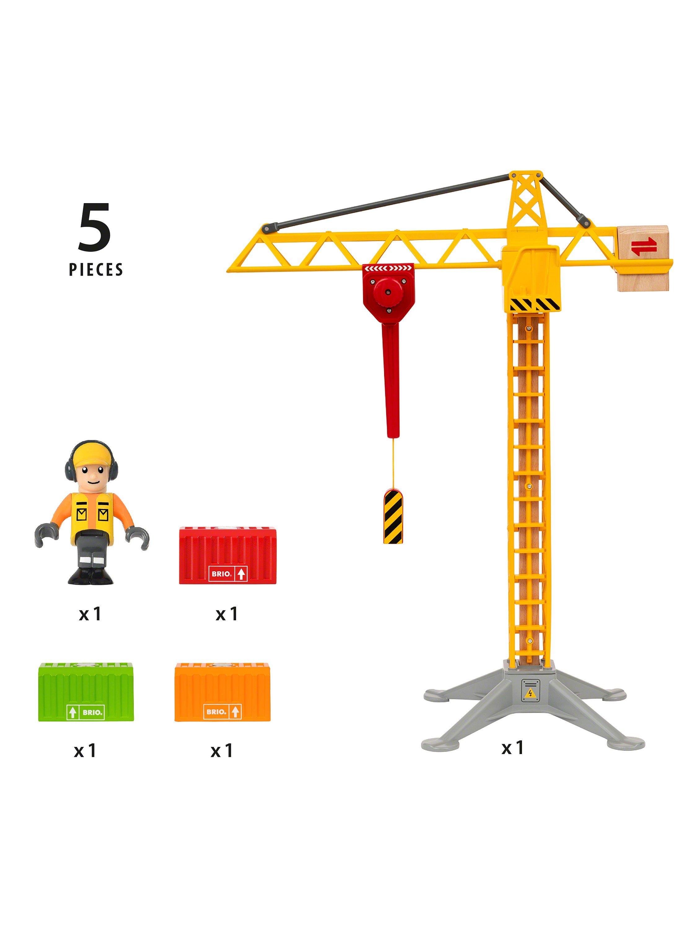 Includes 5 pieces: 1x Light Up Construction Crane, 1x Construction Figure, 1x Red Container Load, 1x Orange Container Load, 1x Blue Container Load.