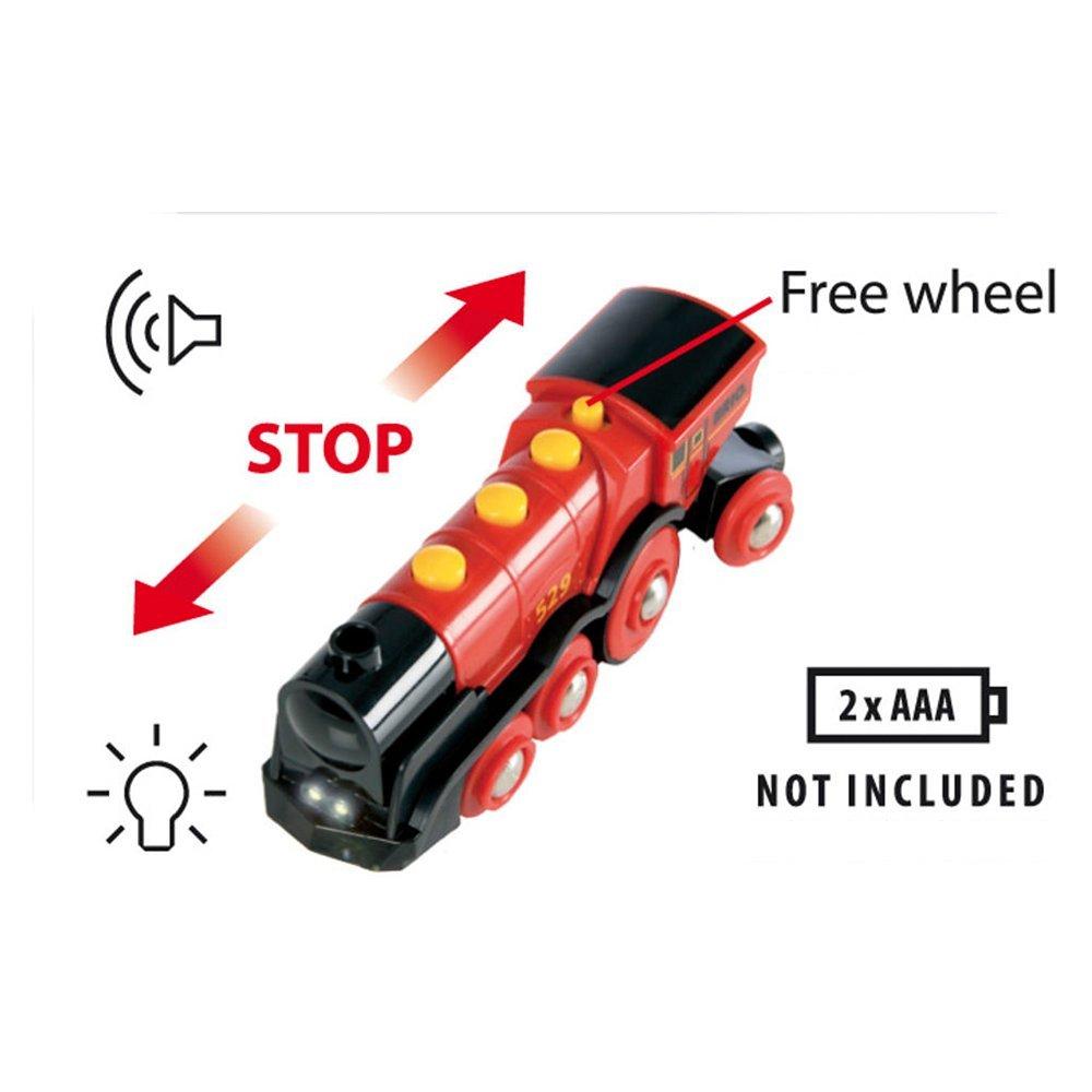 The locomotive can go forward or reverse whenever needed, while the switch on top allows free wheel movement without battery function. Designed to help improve your child's spatial awareness and fine motor skills, it's manufactured to Brio's high standards from FSC Certified wood.