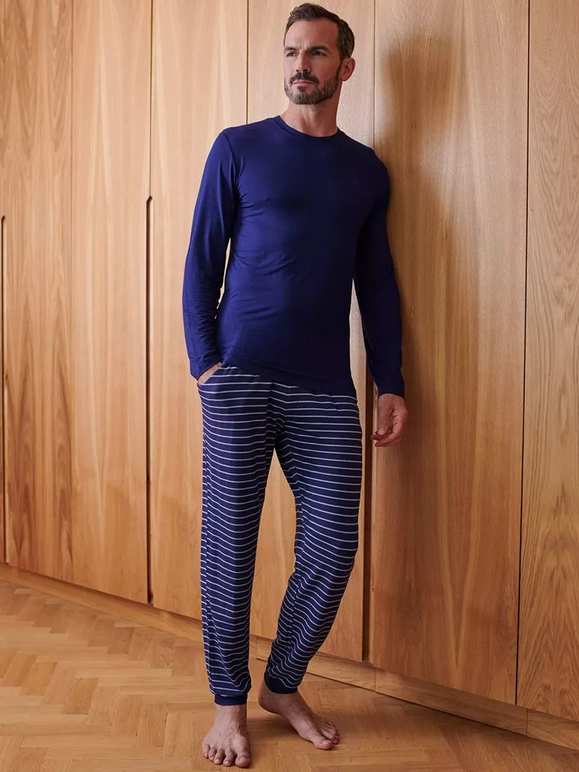 This long sleeve, long leg bamboo PJ set feels incredible against the skin. The fabric is super soft and stretchy so it moves with you. But it has a silk-like quality so you feel incredible in them, and because they're made from natural fibres they are wonderfully breathable too. Perfect for a great night's sleep!