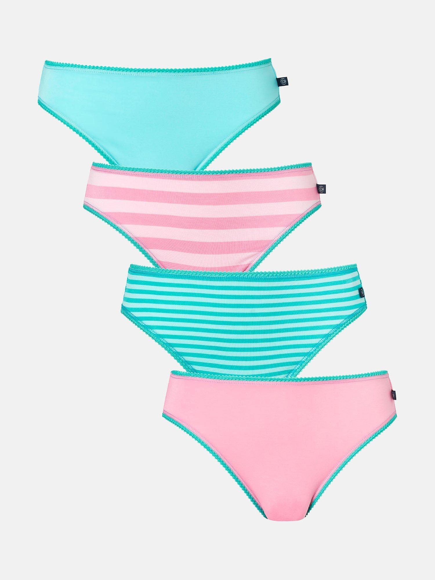 British BoxersBamboo High Leg Knickers, Pack of 4, Green/Pink, M