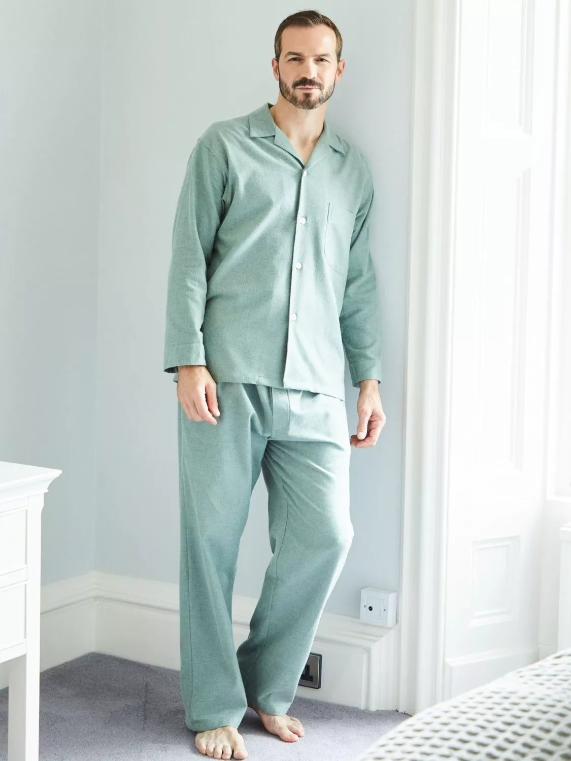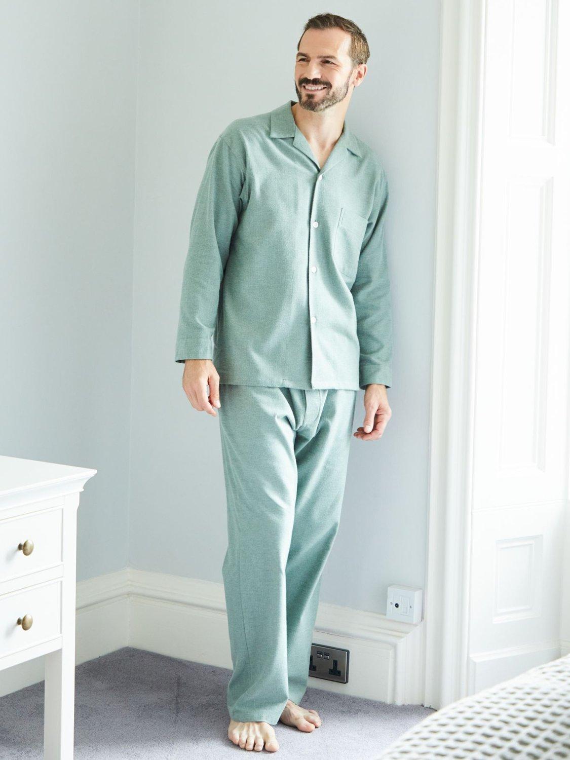 These luxuriously soft pyjamas are made from 100% cotton which has been brushed repeatedly for an exceptionally cosy feel. A timeless style, the shirt is finished with a top pocket and the trousers feature a hidden button on the fly and elasticated waist.