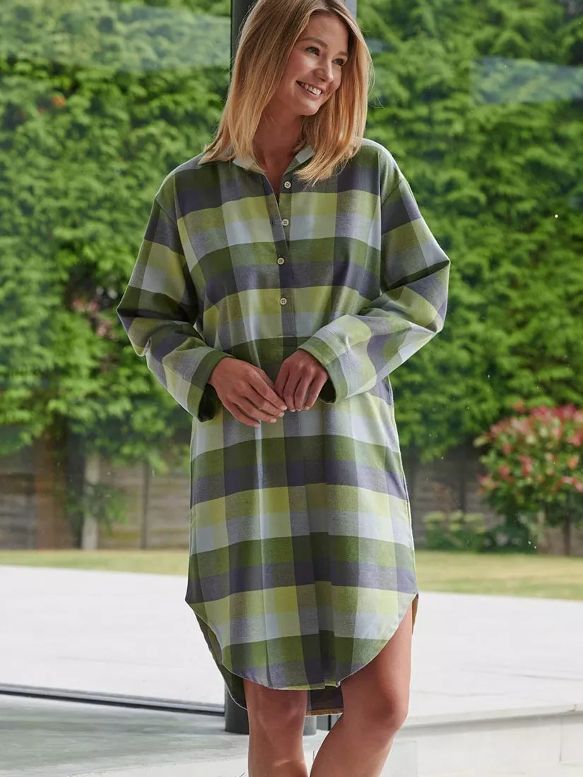 Printed with neat checks, this long-sleeved collared nightshirt from British Boxers is easy and effortless in pure cotton.