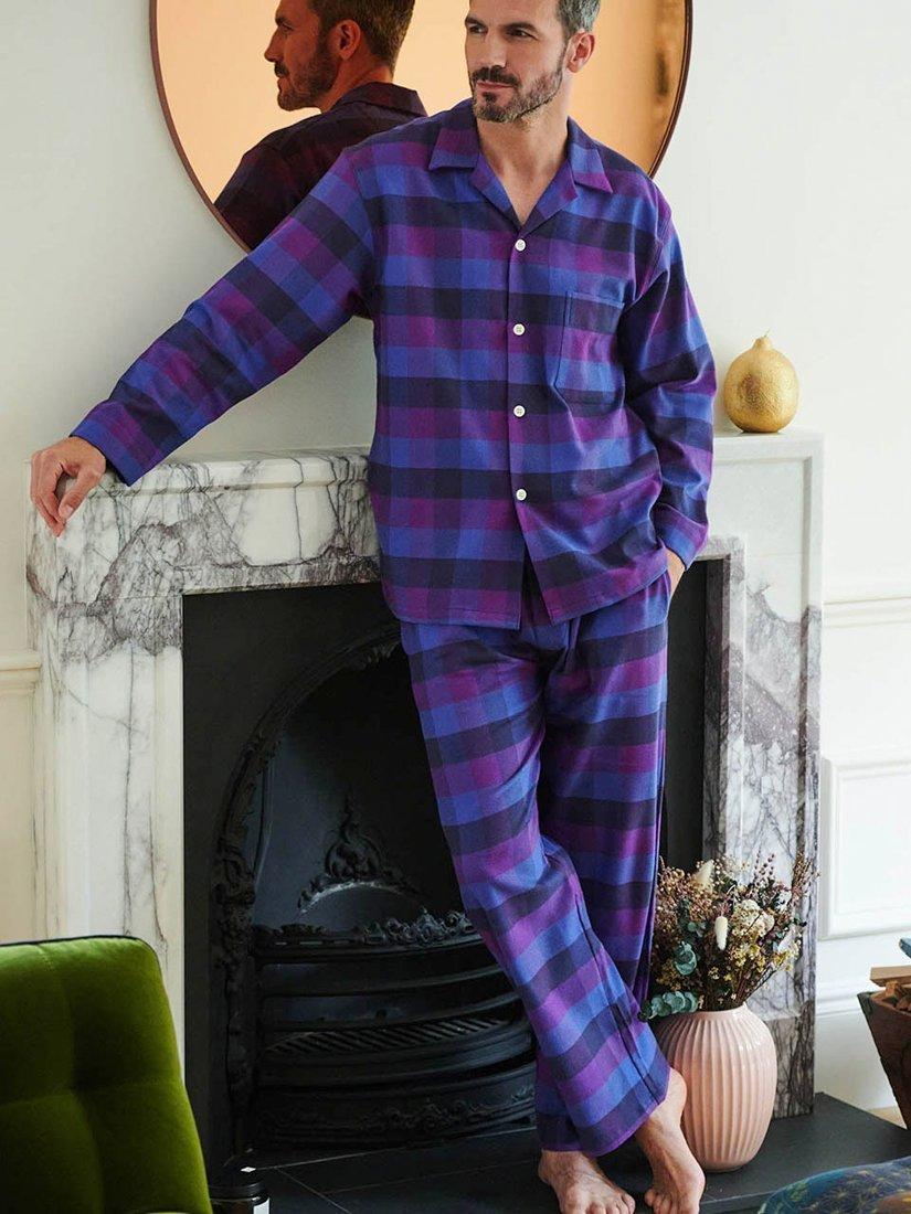 Designed with maximum comfort in mind, it's no wonder these British Boxers pyjamas get rave reviews. Luxuriously soft, they're made from brushed cotton which is woven to the brand's exact specifications, the fibres brushed repeatedly for an exceptionally cosy feel. Offered in a timelessly stylish design, the jacket is finished with a top pocket, while the trousers feature a hidden button on the fly and a comfy elastic waist at the back.
