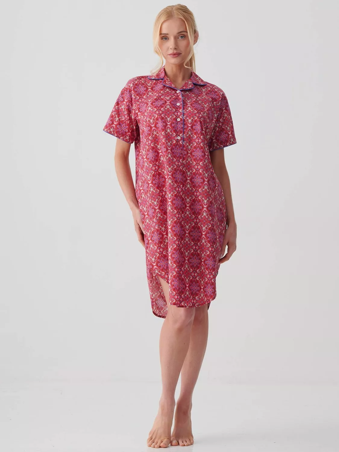 Striped for a truly sophisticated slumber, this short-sleeved collared nightshirt from British Boxers is cut from pure cotton for breathable comfort.