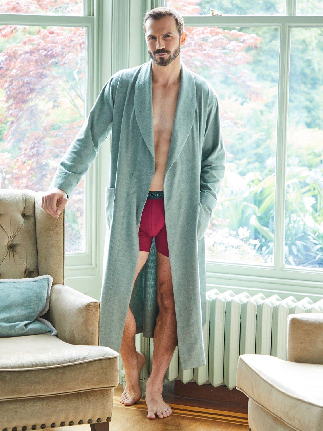 From leisurely mornings to cosy nights in, your dressing gown's always got your back. This one is crafted from the softest brushed cotton and features two pockets at the front, inside ties, a shawl collar and a belt tie. A must-own for the discerning gent. Length: 49"/125cm.