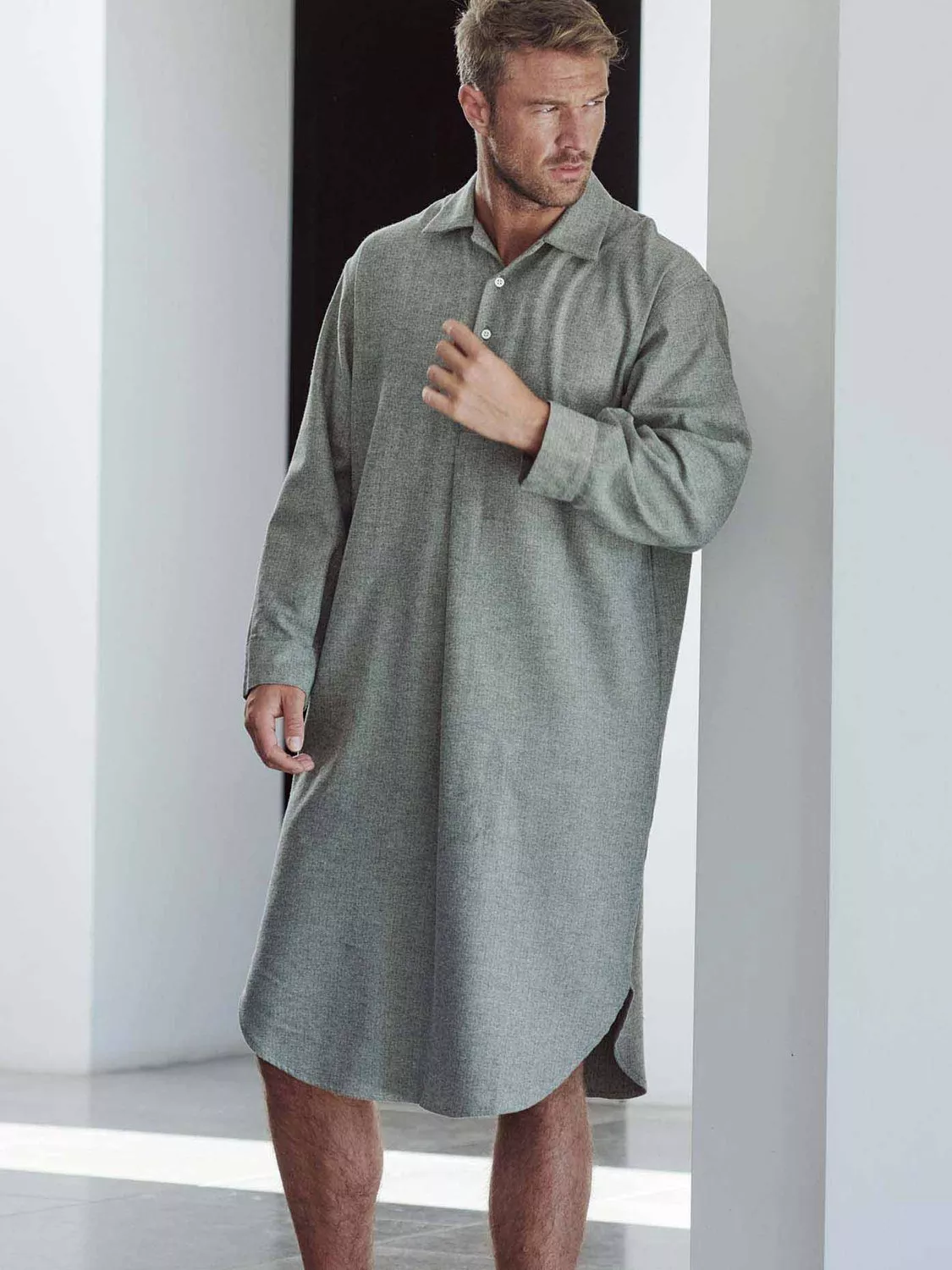 An absolute classic. For lounging or sleeping, this charming nightshirt offers a roomy fit for great freedom of movement and comfort. It's crafted from the softest brushed cotton, which is woven to British Boxers' exact specifications, the fibres brushed repeatedly to feel wonderfully luxurious against the skin. Made to a timeless design, this nightshirt is finished with French seams and a three-button neck opening.